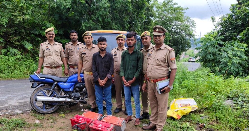 हाइवे पे खड़े टेलर से बैटरी चोरी करने वाले 2 शातिर चोर को अनपरा पुलिस ने चोरी की बैटरी के साथ किया गिरफ्तार