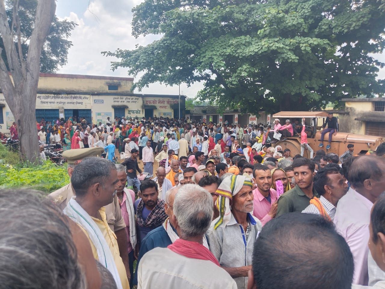 बीजपुर (रामजियावन गुप्ता) म्योरपुर विकास खण्ड क्षेत्र अन्तर्गत बखरिहवा कोआपरेटिव लेम्पस पर बुधवार की सुबह से विभिन्न गांव के कस्बों से खाद वितरण की सूचना पर पहुंचे किसानों ने तीखी धूप के कारण अपना- अपना जूता चप्पल रखकर खाद लेने के लिए नम्बर लगाया ।हजारों की संख्या में खाद लेने पहुंचे किसानों में काफी गहमा गहमी रही ।हंगामे को देखते हुए कोआपरेटिव सचिव कृष्णा दास ने एक सूचना चस्पा कर दिया था कि समिति से जुड़े किसान अपना खतौनी ,आधार कार्ड,साथ लेकर आए ,समिति से जुड़े कृषक सदस्यों को प्राथमिकता दी जाएगी,एक एकड़ से कम खेती करने वालों को खाद नहीं मिलेगा,बकायेदार समिति के सदस्य को भी खाद पर प्रतिबंध रहेगा।इन सब बायलॉज के बावजूद किसानों की भारी भीड़ खाद लेने के लिए उमड़ी रही। किसान रामजियावन,गंगा प्रसाद,कैलाश,कांति प्रसाद,भुल्लू,रविन्द्र जायसवाल, बलराम,रामचंद्र शर्मा, भोला,राजाराम लालदेव आदि किसानो ने बताया कि बारह बजे के बाद ए डी ओ कोआपरेटिव संतेश राय,अजय कुमार म्योरपुर के नेतृत्व में किसानों को टोकन वितरण कर कहा गया कि 200 बोरी और खाद आज आ गया कुल 711बोरी खाद गोदाम में आ चुका है। टोकन वितरण कीए गए 200 सो किसानो को गुरूवार को वितरण किया जाएगा। ए डी ओ कोआपरेटिव के घोषणा के बाद किसानों ने जमकर बवाल काटा हंगामे के बीच पुलिस को भी स्थिति नियंत्रण करने में पसीने छूट गए।अब गुरुवार को केवल टोकन धारी किसान ही गोदाम पर पहुंचेंगे । ए डी ओ ने घोषणा कर साफ कर दिया कि जरहा न्याय पंचायत के नामांकित गांवों के ही किसान जिनको टोकन बाटा गया वही खाद लेने के लिए आयेंगे यहां भीड़ लगाकर अनावश्यक कार्य में बाधा उत्पन्न न करे। वहीं चेतवा में एक लाइसेंसी खाद दुकानदार के यहां भी भारी भीड़ लगी रही दुकानदार खाद कमी को देखते हुए वह भी वितरण नहीं किया दुकान बंद कर फरार हो गया बौखलाए किसानों ने दोनों जगहों पर खाद न मिलने से जमकर बवाल काटा ।कालाबाजारी कर इलाके में बेची जा रही ऊंचे दामों में यूरिया खाद के नियंत्रण के लिए किसानों ने हंगामा किया। ए डी ओ कोआपरेटिव के समझाने के बाद किसान आज फिर मायूस होकर वापस लौट गए।चौपट हो रही फसल खाद की वजह से किसानों में गहरी नाराजगी व्याप्त हैं। खाद न मिलने से किसानों का गुस्सा सातवें आसमान पर है जो आज कोआपरेटिव पर देखने को मिला।