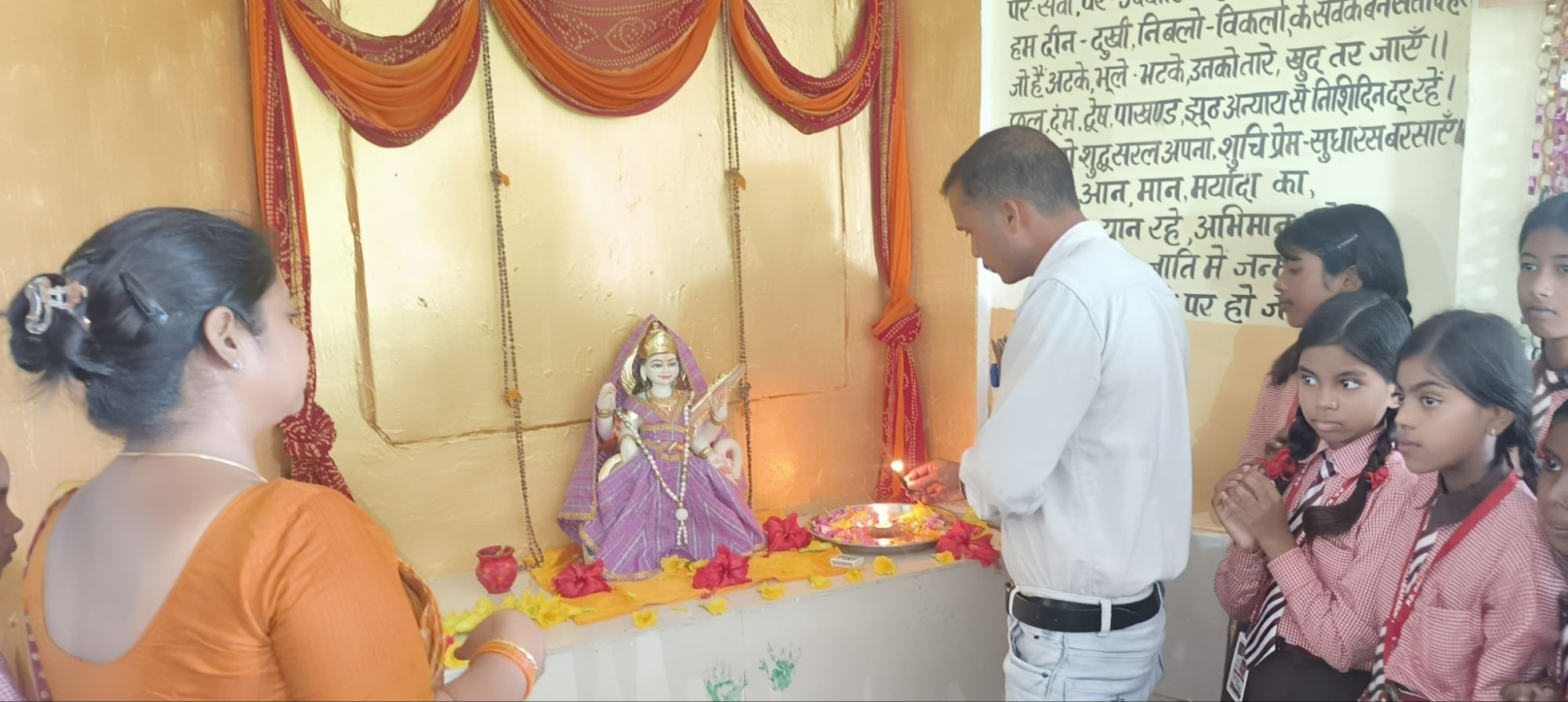 शिक्षक दिवस के अवसर पर गांव के नवनियुक्त ग्राम प्रधान श्रवण कुमार जो पूर्व में एक शिक्षक रह चुके हैं, उन्होंने विद्यालय के सभी शिक्षकों का सम्मान करते हुए शिक्षक दिवस की शुभकामनाएं दी। उन्होंने कहा कि शिक्षक सिर्फ एक व्यवसाय नहीं, यह भविष्य निर्मित करने की एक क्रियाविधि है। एक शिक्षक सही और गलत में भेद करना सीखाकर बच्चों के चरित्र निर्माण में महत्वपूर्ण भूमिका निभाता है। शिक्षक हमें अनुशासित करते हैं। हमारे अंदर जिज्ञासा पैदा कर हमें सीखने के लिए उत्सुक बनाते हैं। ऐसे ही शिक्षक प्रबुद्ध होकर गुरु बनते हैं। इस अवसर पर प्रधानाध्यापिका वर्षा रानी ने ग्राम प्रधान श्रवण कुमार व एसएमसी अध्यक्ष रंजना देवी का अभिवादन करते हुए सभी शिक्षकों को शिक्षक दिवस की शुभकामनाएं ज्ञापित की। सभी बच्चों को संबोधित करते हुए कहा कि, “बच्चों को विकसित होते देखना हमारी सबसे बड़ी उपलब्धि है। बतौर शिक्षक बच्चों के चरित्र निर्माण से लेकर उनके भविष्य निर्माण तक की यात्रा में हम पूर्ण निष्ठा, समर्पण, लगन और तन्मयता के साथ प्रतिबद्ध होकर लगे हुए हैं। उनसे मिलने वाला प्रेम और सम्मान हमारी धरोहर है जो प्रतिपल बच्चों को आगे बढ़ाने हेतु हमें तत्पर रखता है।”