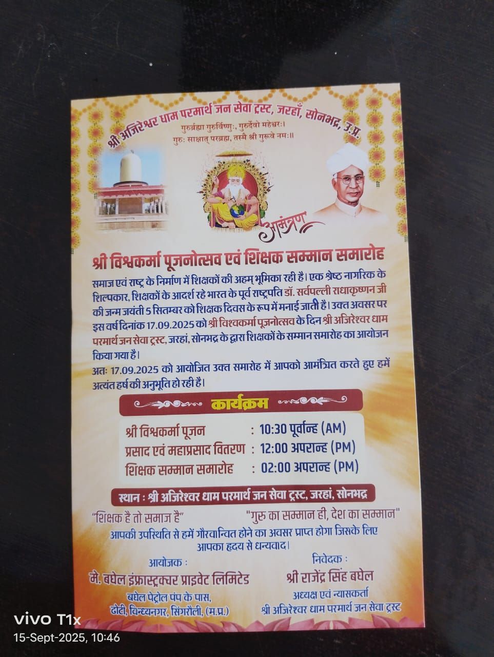 अजीरेश्वर धाम में बुधवार को विश्वकर्मा पूजनोत्सव के साथ होगा शिक्षकों का विशाल सम्मान समारोह