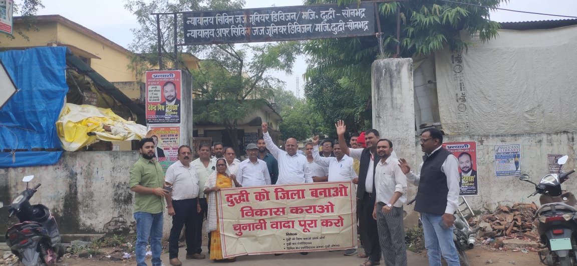 दुद्धी को जिला बनाओ को लेकर अधिवक्ताओं का विरोध प्रदर्शन