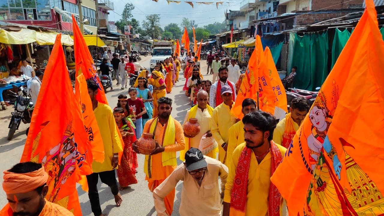 राम जानकी मंदिर में कलश यात्रा के साथ नवरात्र का पाठ प्रारम्भ