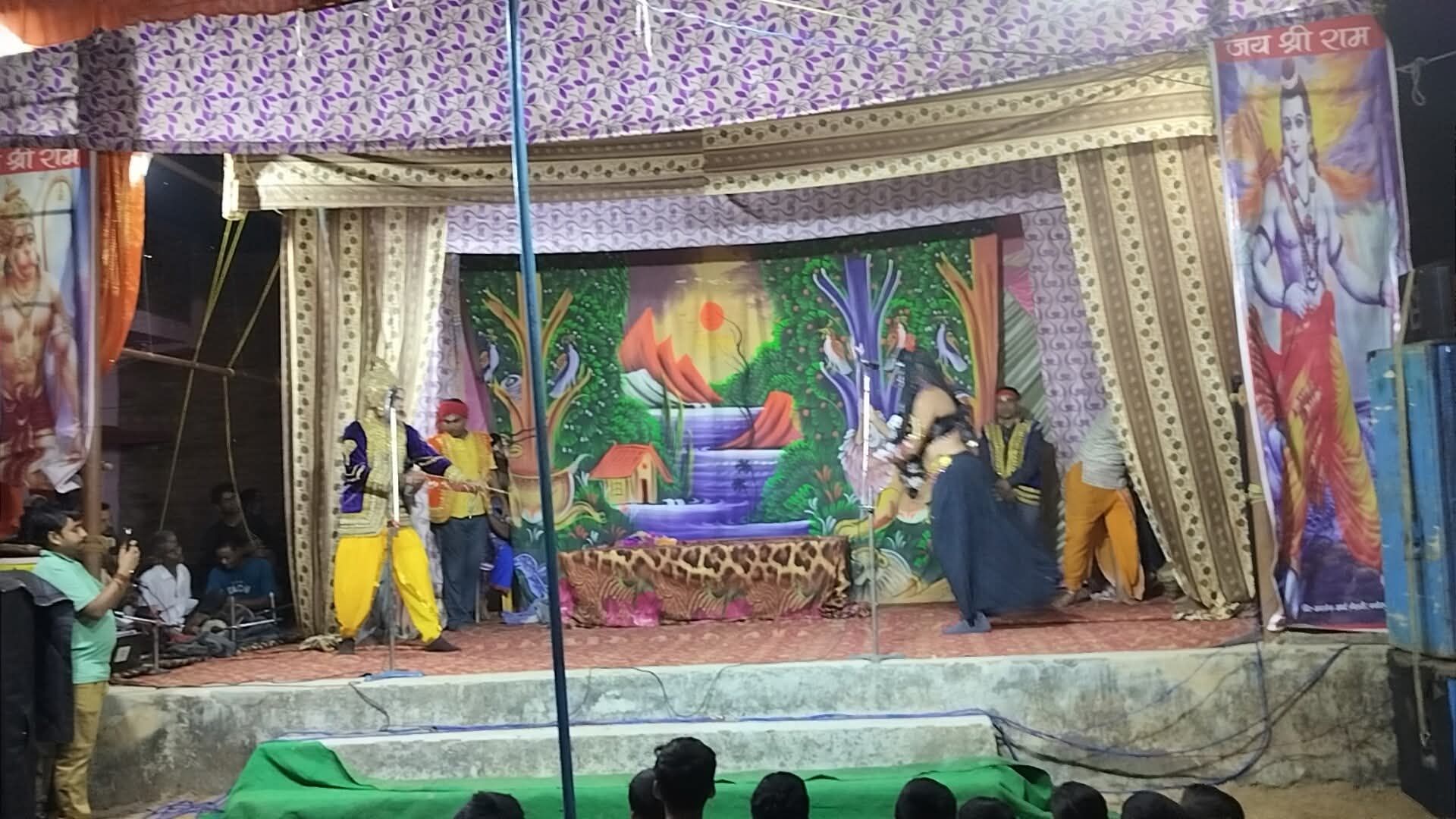 म्योरपुर रामलीला स्टेज पर ताड़का वध का प्रसंग हुआ आकर्षक
