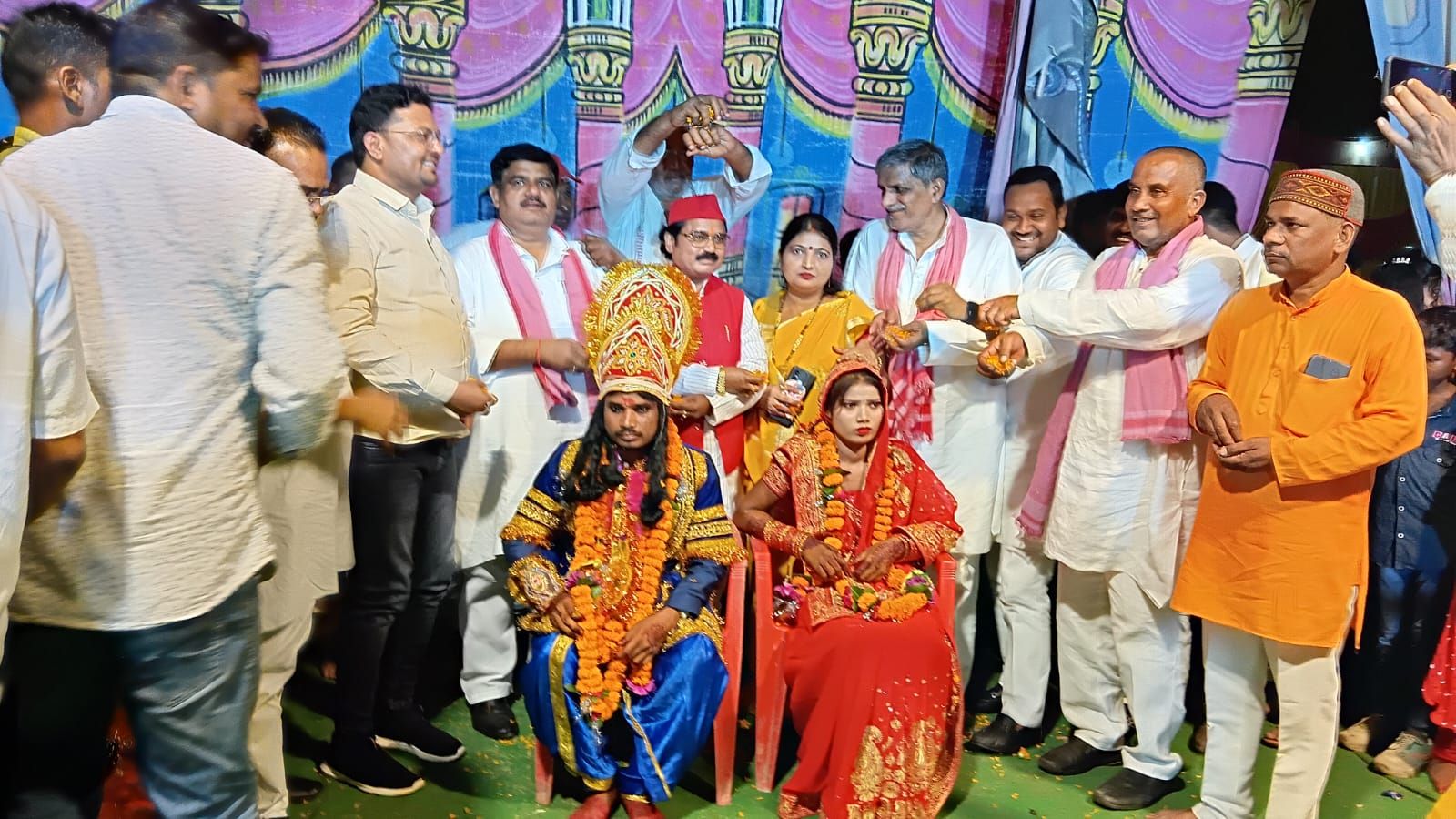 गुरमा/सोनभद्र (ओम प्रकाश गुप्ता) 1963 से चली आ रही गुरमा का आदर्श ऐतिहासिक रामलीला मंचन पर इस बार भी आदर्श के रूप में फिर एक बार साबित हुआ है। रामलीला समिति के तत्वाधान में शनिवार की रात मंचन के दौरान राम विवाह के अवसर पर निर्ध कन्या का विवाह कराकर असल जिंदगी के रूप मे राम एंव सीता बन गये।ऐतिहासिक विवाह के साक्षी के रूप में क्षेत्रीय सांसद छोटेलाल खरवार सपा जिलाध्यक्ष रामनिहोर यादव, म्योरपुर के पूर्व ब्लाक प्रमुख संजय यादव, गूरमा नगर पंचायत के पूर्व अध्यक्ष एंव सपा जिला महासचिव मो0 सईद कुरैशी जिला पंचायत सदस्य पटवध शुनील सिंह गोंड,जिला सचिव लालब्रत यादव, विधानसभा अध्यक्ष परमेश्वर यादव रहे सभी ने वर वधु को आशीर्वाद देकर उज्ज्वल जीवन की मंगल कामना की।सीता के रूप मे सुधा निवासीनी मारकुंडी, बहेरा टोला थाना चोपन एंव राम के वेश में बाल गोविन्द निवासी नौडिया मीरजापुर के साथ हुआ। रामलिला के मच पर पहुँचते ही गुरमा के नगरवासी बारात पक्ष का जोरदार फुल मालाओ से स्वागत अभिनंदन करते हुए मंच पर पहुचे और सीता के रूप के वेशभूषा मे सजी सुधा को राम के रूप मे बाल गोविन्द ने जयमाल गले मे डालकर असल जिंदगी मे राम सीता बन गए। उसके बाद हिन्दू धर्म के अनुसार पंडित द्वारा वैदिक मंत्रोचार कर विवाह संपन्न कराई गयी।इसके बाद आशिर्वाद के रूप मे रामलीला कमेटी के अध्यक्ष गौतम यादव द्वारा एंव मोटरसाइकिल, बेड, एक साइकिल,अगुठी चैन, पायल,वर्तन अन्य सामग्री के साथ लम्बी उम्र के साथ उज्ज्वल भविष्य की शुभकामनाएँ के साथ वर बधु को आशिर्वाद देकर विदा किया। इस एतिहासिक विभाग को देखने के लिए कई हजारो की भीड़ उमड़ पड़ी थी।इस अवसर पर रामलिला समिति संरक्षण मीनू चौबे, उप संरक्षण राजीव मिश्रा,पुर्व प्रधान तेजधारी यादव,मोहिन्द्र पाल सिंह, विमलेश मौर्य राजकुमार मिश्रा,शीतल यादव,,संतोष सिंह उर्फ श्रीनेत्र,संजय चौबे, मनोज सिंह इत्यादि लोग उपस्थित रहे। मंच के कार्यक्रम का संचालन पुर्व चेयरमैन मो सईद कुरैशी एंव ओमप्रकाश बादल ने किया। सुरक्षा व्यवस्था के मद्देनजर गुरमा चौकी प्रभारी योगेन्द्र पांडेय पुलिसकर्मियो के साथ मौजूद रहे।