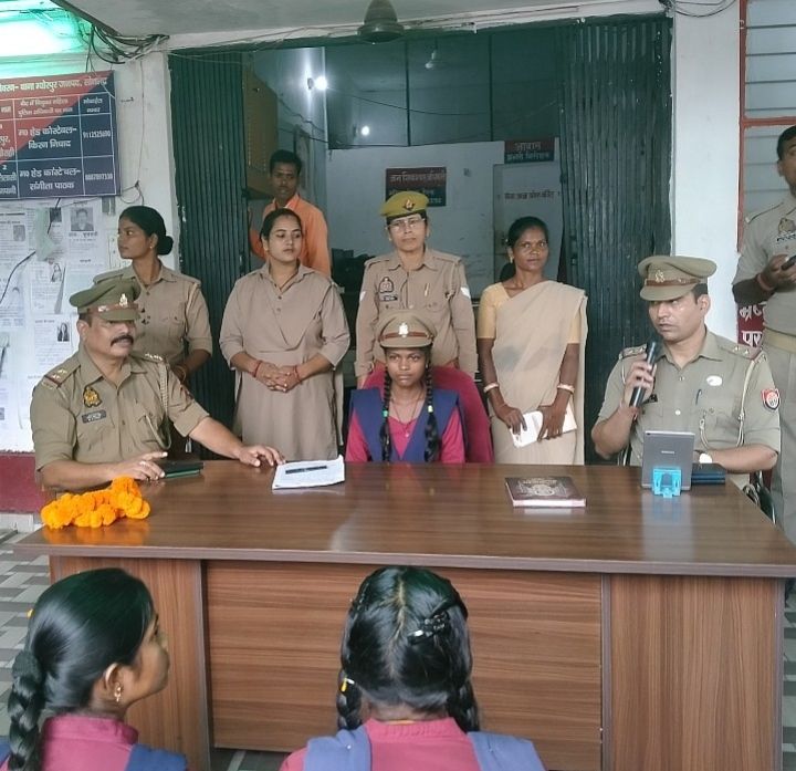 म्योरपुर स्थानीय कस्बा मे मिशन शक्ति के तहत लीलासी स्थित राजा चँडोल इंटर कालेज मे अध्ययन कर रही सुमित्रा पुत्री रामा शंकर निवासी गोहड़ा जो क़क्षा 12 कि छात्रा है उसे एक दिन का थानाध्यक्ष बनाया गया इस दौरान एक दिन कि थानाध्यक्ष सुमित्रा ने दो पीड़ितो का प्रार्थना पत्र ले लीलासी चौकी इंचार्ज मनोज सिंह को त्वरित मामले कि जाँच कर कार्यवाही करने का निर्देश दिया एक दिन कि थानाध्यक्ष सुमित्रा ने कहा कि मै बड़ी होकर पुलिस बनना पसंद करूंगी पुलिस बनने के लिए मै जी जान एक कर दूंगी साथी सहेलियों को बताया कि हमें किसी से डरना नहीं है डट कर लड़ना है सभी छात्राओं को जागरूक करते हुए