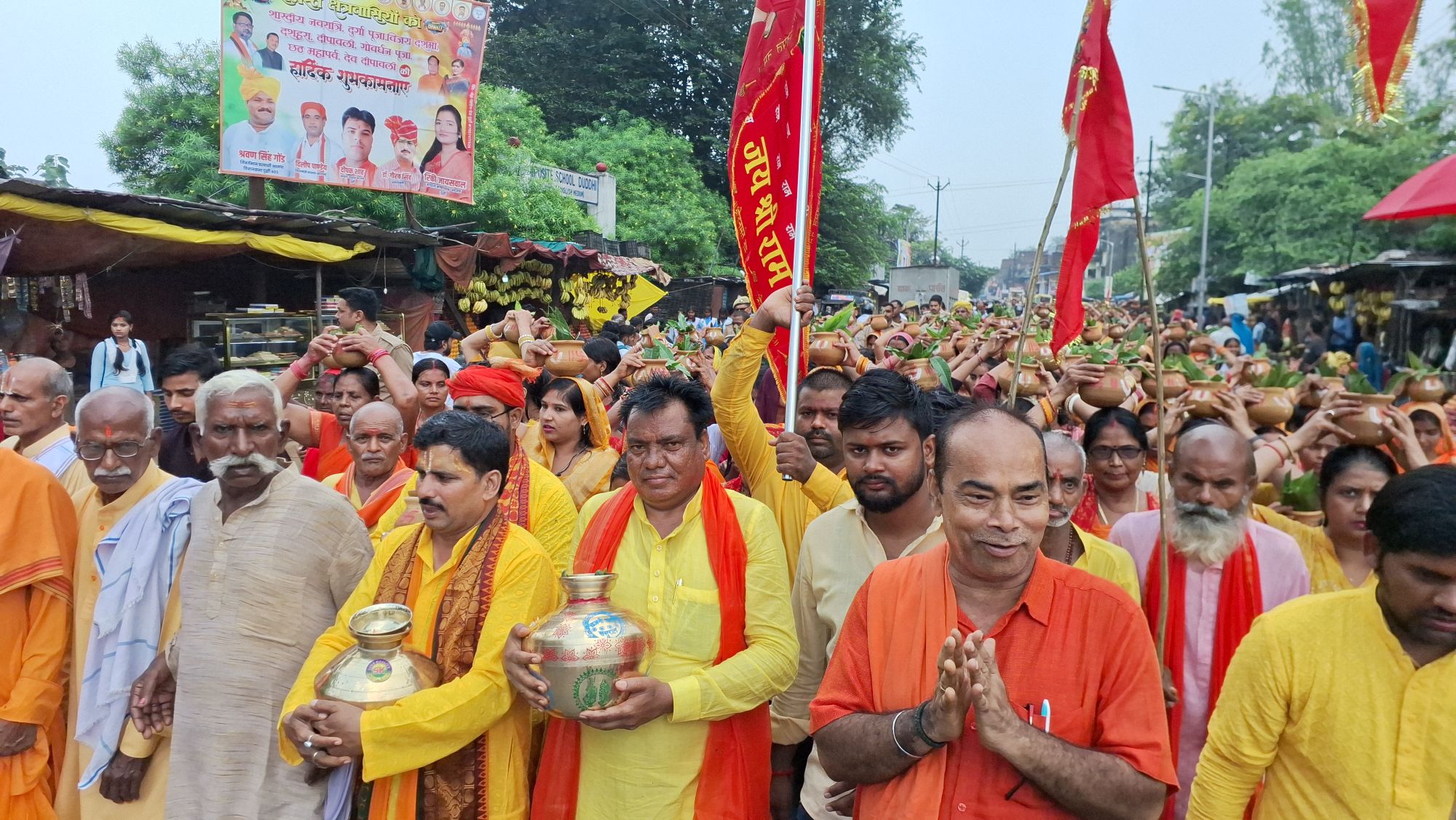 21 कुंडीय सुदर्शन यज्ञ में निकली कलश शोभायात्रा, उमड़ी भारी भीड़