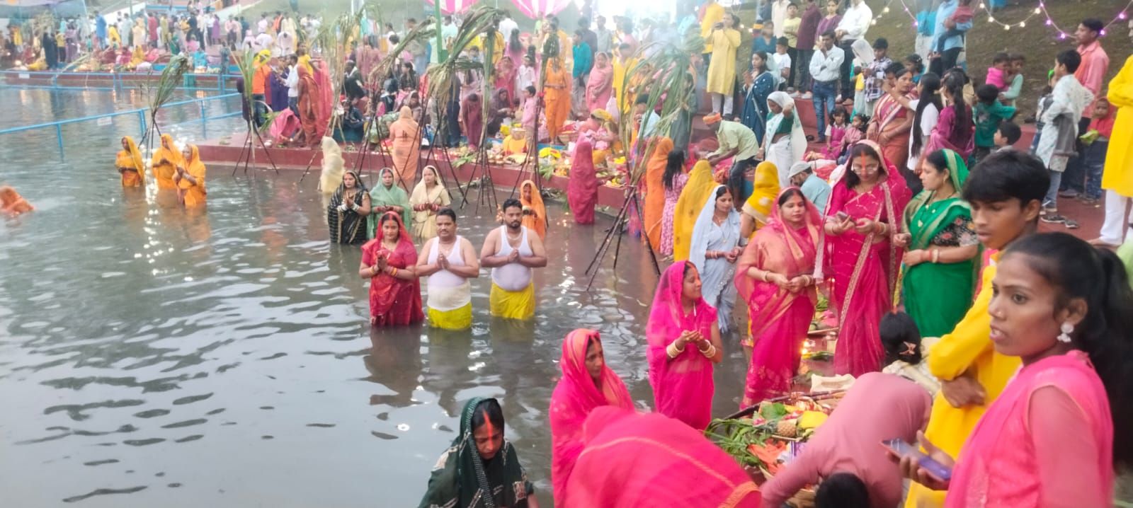 व्रती महिलाओं ने अस्ताचलगामी सूर्य को अर्घ्य देकर सुख समृद्धि की कामना