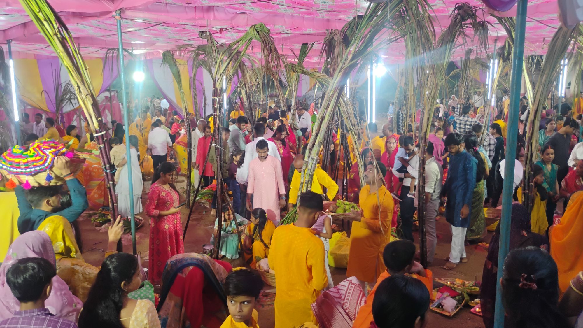 व्रती महिलाओं ने कमर तक जल में खड़ा होकर अस्ताचलगामी सूर्य को अर्घ्य दिया इस दौरान हर तरफ छठ्ठी माई के मंगल गीत से समूचा इलाका नदी घाट, बाजार , चट्टी , चौराहा गुंजायमान हो गया। घर से लेकर घाट तक चारो तरफ मेले जैसा माहौल रहा सिर पर दउरा लेकर पहुंची व्रती महिलाओं ने षष्ठी माता की वेदी पर साष्टांग दंडवत कर दीप जलाया तो किसी ने आंचल से रास्तों की धूल बटोर कर अपनी श्रद्धा से दीप प्रज्वलित किया स्वच्छ घाटो पर मेले जैसा माहौल रहा।