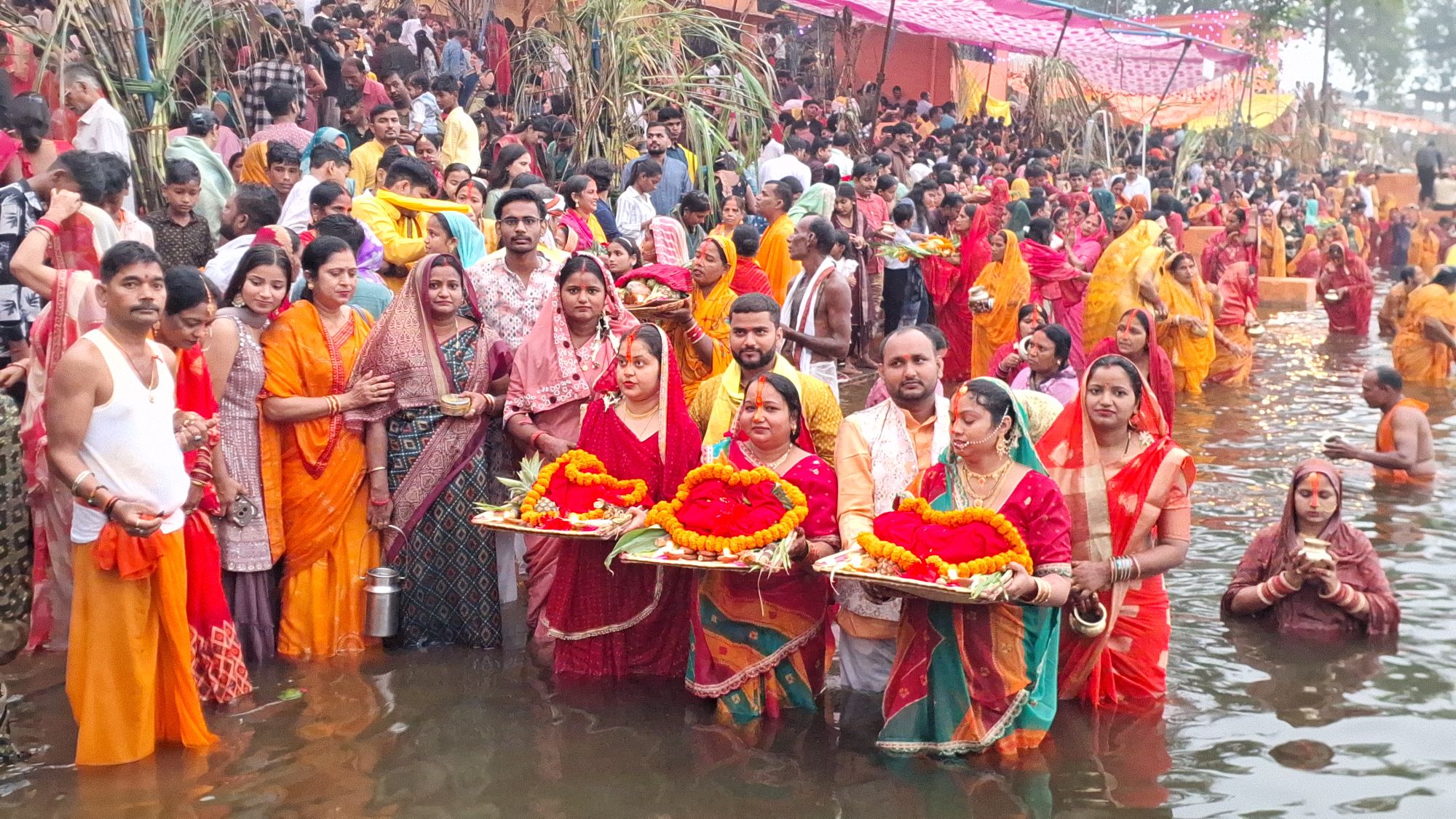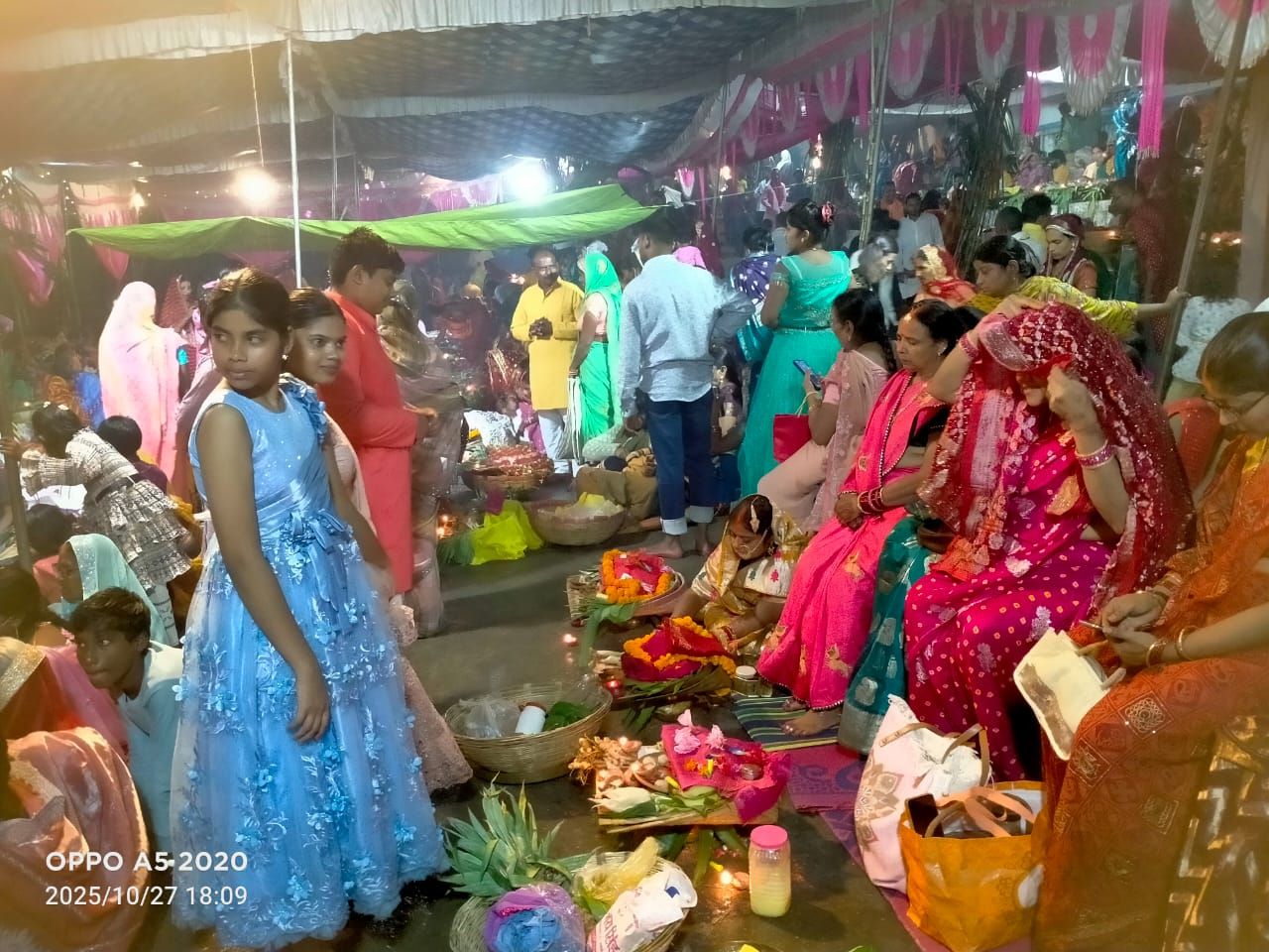 ब्रतधारी श्रद्धालुओं ने अस्ताचलगामी भगवान भाष्कर को अर्ध्य देकर की लोक मंगल की मंगल कामना