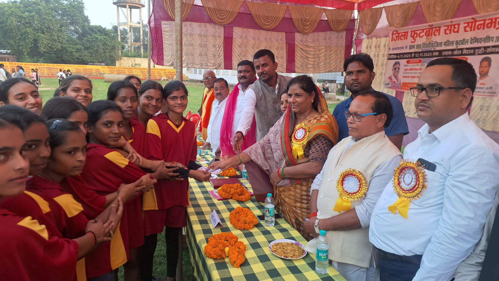 रेनुसागर की टीम के खिलाड़ी अंजली ने जीजीआईसी दुद्धी को एक गोल से हराकर मैच जीता। निर्णायक कप्तान यादव, संदीप व अशोक रहे। टूर्नामेंट के मुख्य अतिथि निशा सिंह ने खिलाड़ियों को पुरस्कृत करते हुए कहा कि आज के वर्तमान समय मे महिलाओं को आगे बढ़चढ़ कर खेलों के साथ अन्य कार्यक्रमों में हिस्सा लेना चाहिए। प्रधानमंत्री ने महिला मैच के जबरदस्त जीत पर खिलाड़ियों से मिलकर हौशला बढ़ाया। बेटियों को फुटबॉल खेलते हुए देखकर बहुत उत्साहित हूँ। महिला घर के साथ देश भी चला सकते हैं। इसके लिए हर संभव कार्य किये जायेंगे। विशिष्ट अतिथि चेयरमैन कमलेश मोहन, श्रवण सिंह गोंड़ ने सभी खिलाड़ियों को पुरस्कृत कर हौशला बढ़ाया। सरकार द्वारा स्थानीय किये गए कार्यों को जानकारी दिया। इस अवसर पर रामेश्वर राय, वशिष्ट जी, मनोज सिंह, राजेश्वर श्रीवास्तव, अर्चना सिंह, अविनाश गुप्ता, अभय, मौजूद रहे। कार्यक्रम का संचालन आयोजक शिवशंकर प्रसाद ने किया। कार्यक्रम का समापन 12 नबम्बर को होना है।