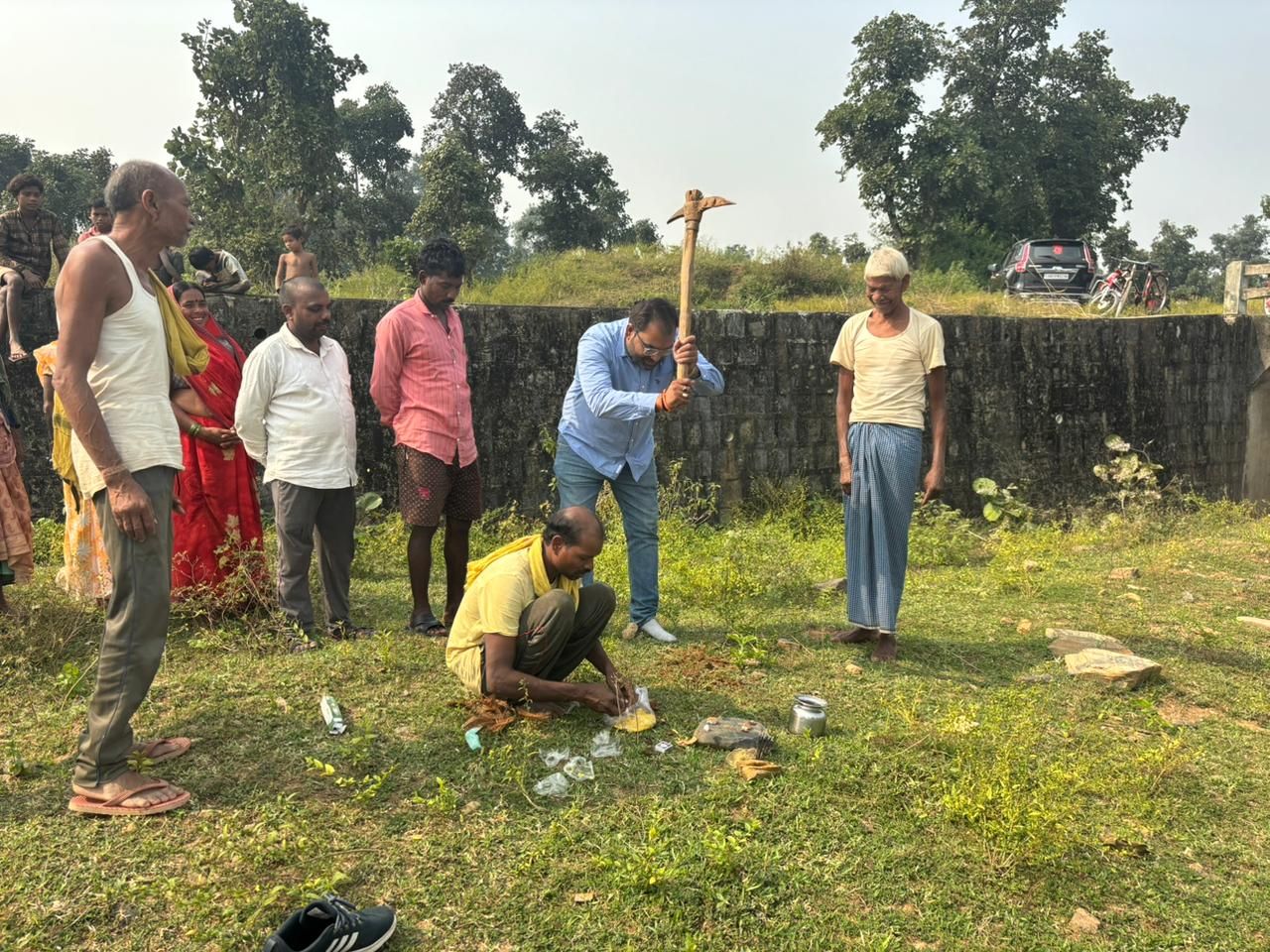 ग्रामीण क्षेत्र की गरीब महिलाओं की मुश्किलों को देखते हुए समाजसेवी अमरेश तिवारी ने छठ और अन्य व्रत पूजन हेतु एक चबूतरा स्वयं से बनवाने का निर्णय लिया और रविवार को ग्रामीणों की मौजूदगी में भूमि पूजन कर निर्माण कार्य हेतु शिलान्यास किया।इस दौरान समाजसेवी अमरेश तिवारी ने कहा कि ऐसे कार्यक्रमों के लिये मै वचनवद्ध हूं,मातारानी ऐसे ही कृपा बनाये रखें,आगे बहुत कुछ करने की अभिलाषा है। इस अवसर पर समाजसेवी जयचंद,राजबहादुर गोड,महाबीर गोड,रामजीत गोड,धर्मराज गोड,अरविन्द कुमार,आशीष कुमार पनिका ,विजय कुमार पनिका,अशोक हलवाई,कृष्णमुरारी श्रीवास्तव,वीरेंद्र,सुमित्रा देवी,पार्वती,गुलाबी,प्रीति,रामा बैगा,बृजलाल बैगा,अशोक भारती समेत भारी संख्या में ग्रामीण उपस्थित रहे।
