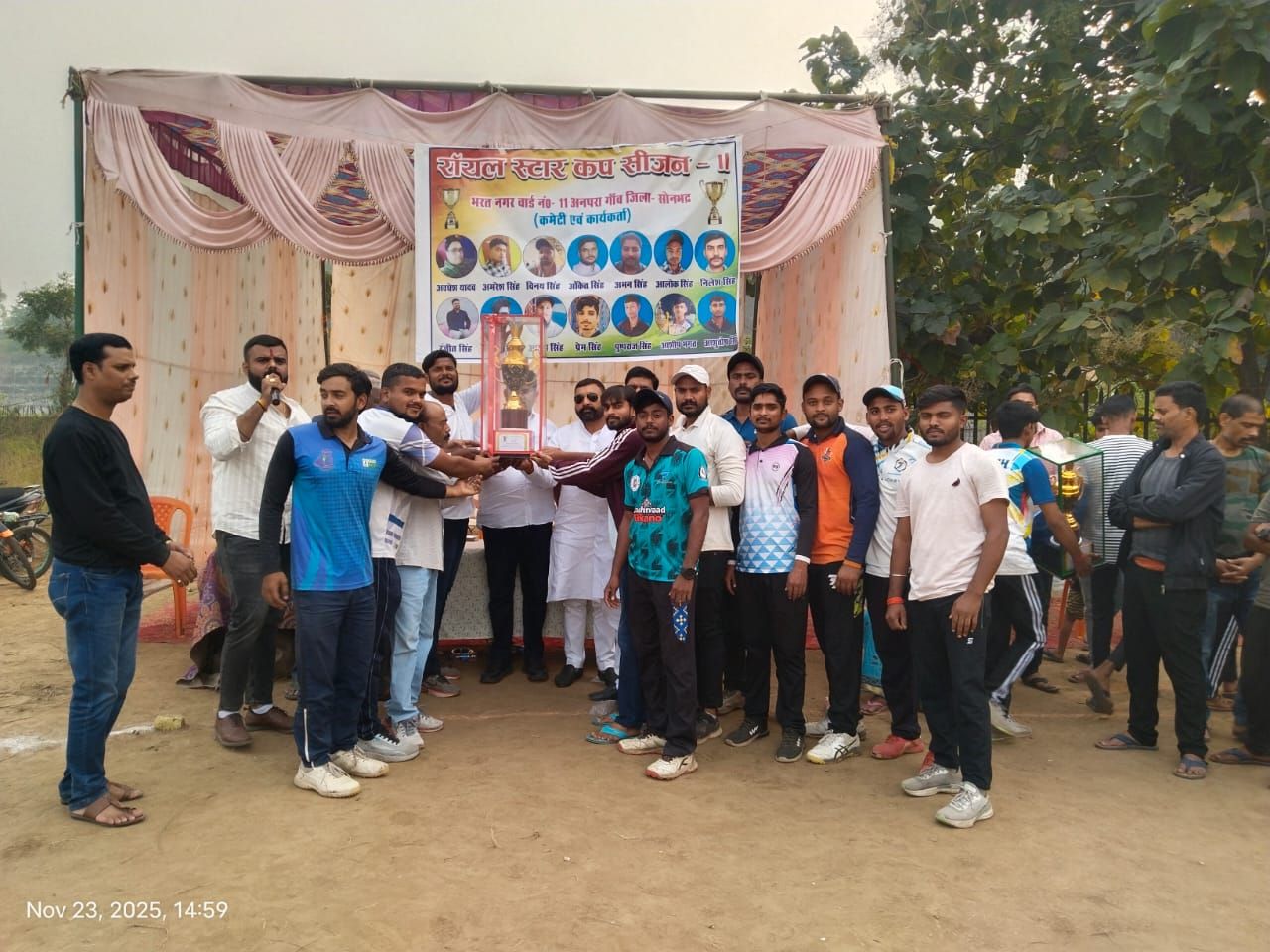 अनपरा/सोनभद्र अनपरा नगर पंचायत के वार्ड नंबर 11 भरत नगर मे आयोजित सात दिवसीय रायल स्टार कप द्वितीय का रोमांचक फाइनल मुकाबला रविवार को अनपरा गांव मैदान मे रायल राजपूत एंड लायंस क्लब क्रिकेट टीम के मध्य खेला गया जिसमे रॉयल राजपूत की टीम विजेता रही। प्रतियोगिता का शुभारम्भ मुख्य अतिथि पीसी पटेल कम्पनी के प्रबंधक विश्वजीत सिंह,विशिष्ट अतिथि अनपरा कोतवाल बृजेश सिंह, प्रेस क्लब अनपरा के अध्यक्ष वरिष्ठ पत्रकार दीपक सिंह, भाजयुमो अध्यक्ष सुरेन्द्र सिंह परमार, सभासद अंगद सिंह सतीश सिंह,राजकुमार सिंह, उदित सिंह, आंनद सिंह ने खिलाड़ियों से हाथ मिलाकर व बल्लेबाजी कर किया। टास जीतकर रायल राजपूत की टीम ने क्षेत्ररक्षण का फैसला लिया, रायल राजपूत की सधी गेंदबाजी के आगे लायस की टीम 12 ओवर मे 51 रन ही बना पाई जबाब मे खेलने उत्तरी रायल राजपूत की टीम का बिना खाता खुले ही सलामी बल्लेबाज विश्वजीत के आउट होने के बाद बल्लेबाज आलोक सिंह ने 19 बाल पर 24 रन और अंकित ने 18 बाल में 20 रन बनाकर इस प्रतियोगिता को अपने नाम कर लिया। मैन आफ द मैच व मैन आफ द टूर्नामेंट अंकित सिंह रहे। उप विजेता टीम से विशाल सिंह 2 ओवर में 10 रन देकर 2 विकेट लिये, सतेंद्र कुमार ने एक ओवर में 14 रन देकर एक विकेट लिया। अंत मे मुख्य अतिथि व विशिष्ट अतिथियों ने विजेता व उप विजेता को शील्ड व कप सहित जीतने वाली टीम को 25 हज़ार तथा उप विजेता टीम को 15 हजार का नगद पुरस्कार दिया। मुख्य अतिथि ने कहा कि खेल में जीत-हार एक महत्वपूर्ण हिस्सा है, लेकिन उससे कहीं ज़्यादा खेल का अनुभव, उससे सीखना और खेल भावना महत्वपूर्ण है। हार से हमें सीखने, धैर्य रखने और बेहतर प्रदर्शन करने का मौका मिलता है, जबकि जीत हमें विनम्रता सिखाती है। इसलिए, खेल के दौरान जीतने-हारने से ज़्यादा, पूरी मेहनत और खेल भावना से खेलना और उससे मिलने वाले सबक ज़्यादा महत्वपूर्ण हैं। प्रतियोगिता का संचालन अभय सिंह व अवधेश यादव ने किया। इस अवसर पर कमेटी के पदाधिकारी