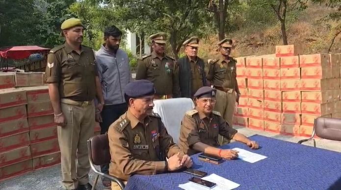 मद्य निषेध एवं राज्य स्वापक नियंत्रण ब्यूरो पटना (बिहार) द्वारा प्राप्त सूचना के आधार पर थाना दुद्धी पुलिस टीम द्वारा रेणुकूट दुद्धी मार्ग, ग्राम कादल के पास चेकिंग के दौरान एक ट्रक संख्या RJ 09 GE 6492 को रोका गया। तलाशी में ट्रक में छिपाकर ले जाई जा रही 680 पेटी, 15120 बोतल, 6085.44 लीटर अंग्रेजी शराब (मैकडावल नं.1 एवं इम्पीरियल ब्लू व्हिस्की ब्राण्ड) बरामद की गई। बरामद शराब व ट्रक की कुल अनुमानित कीमत लगभग 1 करोड़ 35 लाख रुपये है। मौके से एक अन्तर्राज्यीय शराब तस्कर को गिरफ्तार किया गया। इस संबंध में थाना दुद्धी पर मुकदमा अपराध संख्या 293/2025 धारा 318(4), 338, 336(3), 340(2) BNS एवं 60/63/72 आबकारी अधिनियम के तहत अभियोग पंजीकृत कर आरोपी का चालान कर दिया गया है।
