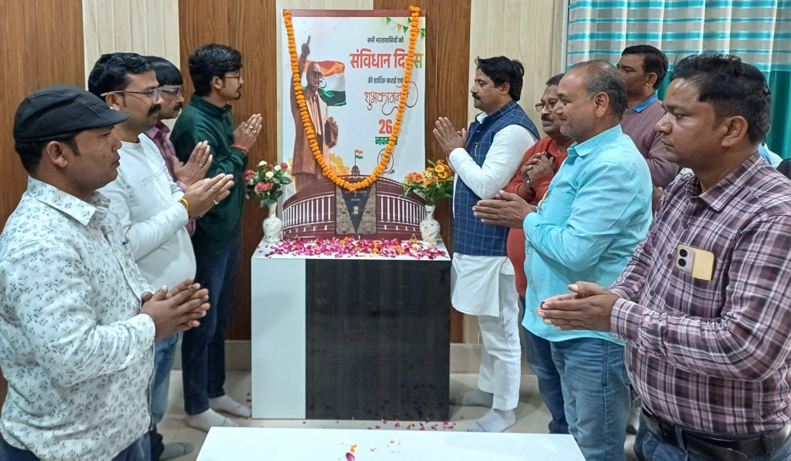 रॉबर्ट्सगंज ब्लॉक परिसर में बुधवार को संविधान दिवस गरिमा और श्रद्धा के साथ मनाया गया। भाजपा अनुसूचित मोर्चा के क्षेत्रीय अध्यक्ष एवं सदर ब्लॉक प्रमुख अजीत रावत ने डॉ. भीमराव अंबेडकर के चित्र पर पुष्प अर्पित कर श्रद्धांजलि दी और उपस्थित कर्मचारियों को संविधान की प्रस्तावना का शपथ-पाठ कराया।