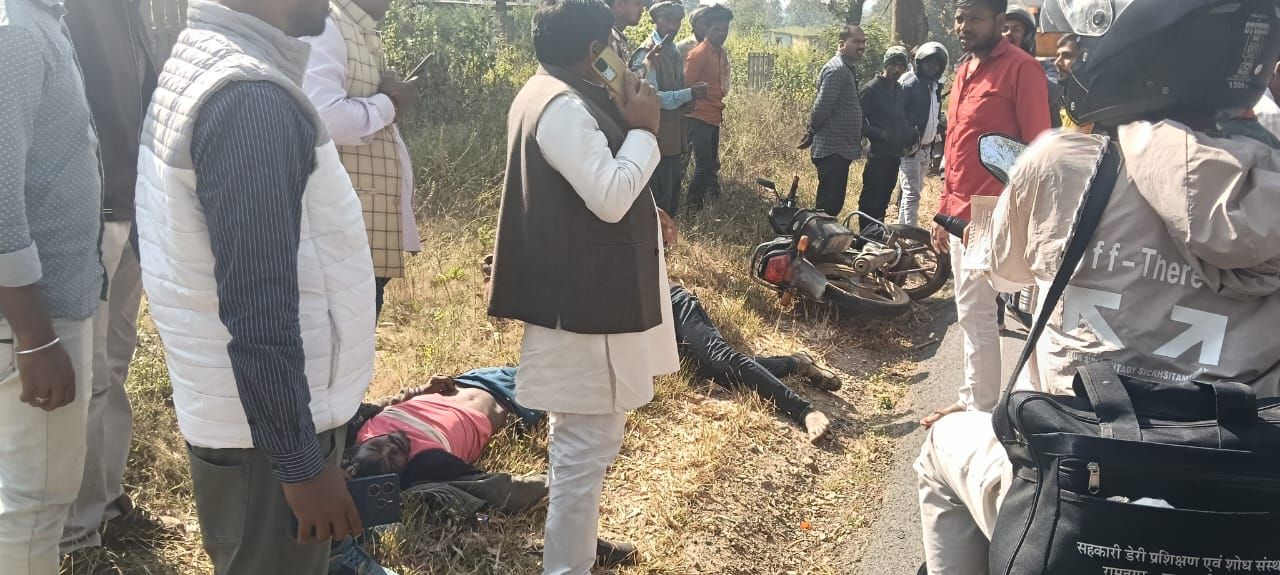 म्योरपुर थाना क्षेत्र के खैराही गांव के पास बीजपुर–मुर्धवा मार्ग पर शुक्रवार को एक तेज रफ्तार कार ने बाइक सवार दो युवकों को जोरदार टक्कर मार दी। हादसे में गणेश विश्वकर्मा (32) और फिरोज (30), दोनों निवासी बलरामपुर (छत्तीसगढ़), गंभीर रूप से घायल हो गए।ग्रामीणों की मदद से ब्लॉक प्रमुख मानसिंह गोड़ ने 108 एंबुलेंस बुलवाकर घायलों को सामुदायिक स्वास्थ्य केंद्र म्योरपुर भेजा। डॉक्टरों ने हालत नाजुक देखते हुए दोनों को जिला अस्पताल रेफर कर दिया। टक्कर मारने वाली कार का चालक मौके से फरार बताया जा रहा है।सूचना पर पुलिस मौके पर पहुंची और जांच शुरू कर दी। घायलों के अनुसार वे अपने कार्यस्थल चतरी (अनपरा) जा रहे थे, तभी कार ने पीछे से टक्कर मार दी।