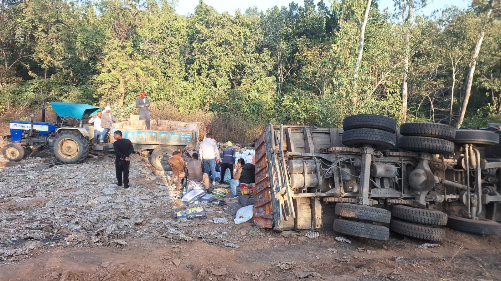 चावल के बिल पर झारखंड जा रही अवैध शराब की ट्रक पलटा