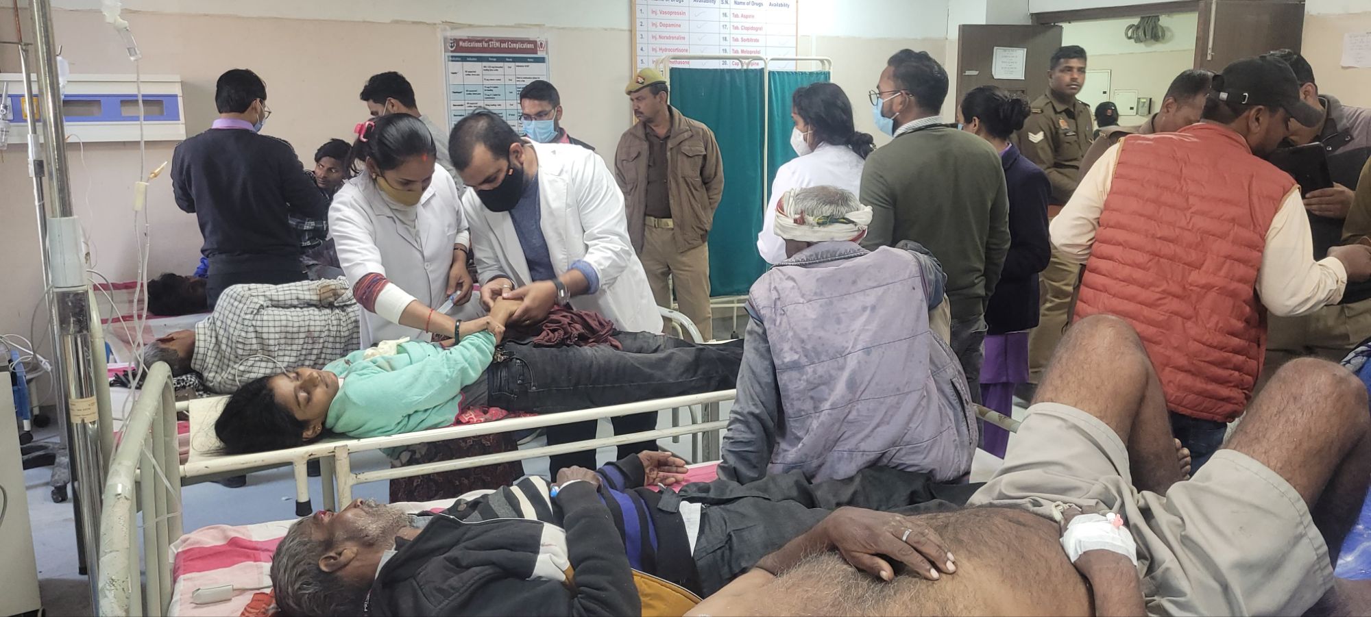 मिली जानकारी के अनुसार राबर्ट्सगंज कोतवाली क्षेत्र के मझिगांव निवासी राम चंद्र पुत्र राम जीत की मृत्यु हो गई थी। घट वाले शव लेकर ट्रैक्टर ट्राली से अंतिम दाह संस्कार हेतु मझिगांव से हिन्दुआरी लेकर जा रहे थे कि मंगलवार की दोपहर चंडी तिराहा के आगे ट्रक ने ट्रैक्टर ट्राली में टक्कर मार दिया। जिससे ट्रैक्टर ट्राली मे सवार करीब 11 लोग घायल हो गए। जिनका प्राथमिक उपचार मेडिकल कालेज लोढ़ी में भर्ती कराया गया है। वही खरपत्तू पुत्र जंगली निवासी भरहरी थाना जुगैल की मौके पर ही मौत हो गई। वही घायलों में इंद्रजीत पुत्र प्रदीप कुमार निवासी मझिगाव राबर्ट्सगंज, अनिल पुत्र लख्खन निवासी अरौली चुर्क राबर्ट्सगंज, कृपा पुत्र राम करन निवासी सजौर राबर्ट्सगंज, राम पति पुत्र सुंदर निवासी सजौर राबर्ट्सगंज, राम प्यारे पुत्र कयर निवासी चपईल पन्नूगंज, रिंकू पुत्र राजू निवासी सजौर मझिगाव राबर्ट्सगंज, राम लखन पुत्र सोमारु निवासी अरौली राबर्ट्सगंज, सियाराम पुत्र सफेद लाल निवासी हिनौती घोरावल, जय राम पुत्र शोभनाथ निवासी ओईनी चौबे करमा, सुरेश पुत्र जगर नाथ निवासी अमउर शाहगंज शामिल है। सूचना मिलते ही सदर कोतवाल माधव सिंह, लोढ़ी चौकी इंचार्ज उमा शंकर सिंह फोर्स के साथ पहुंच कर सहायता में जुटे रहे।