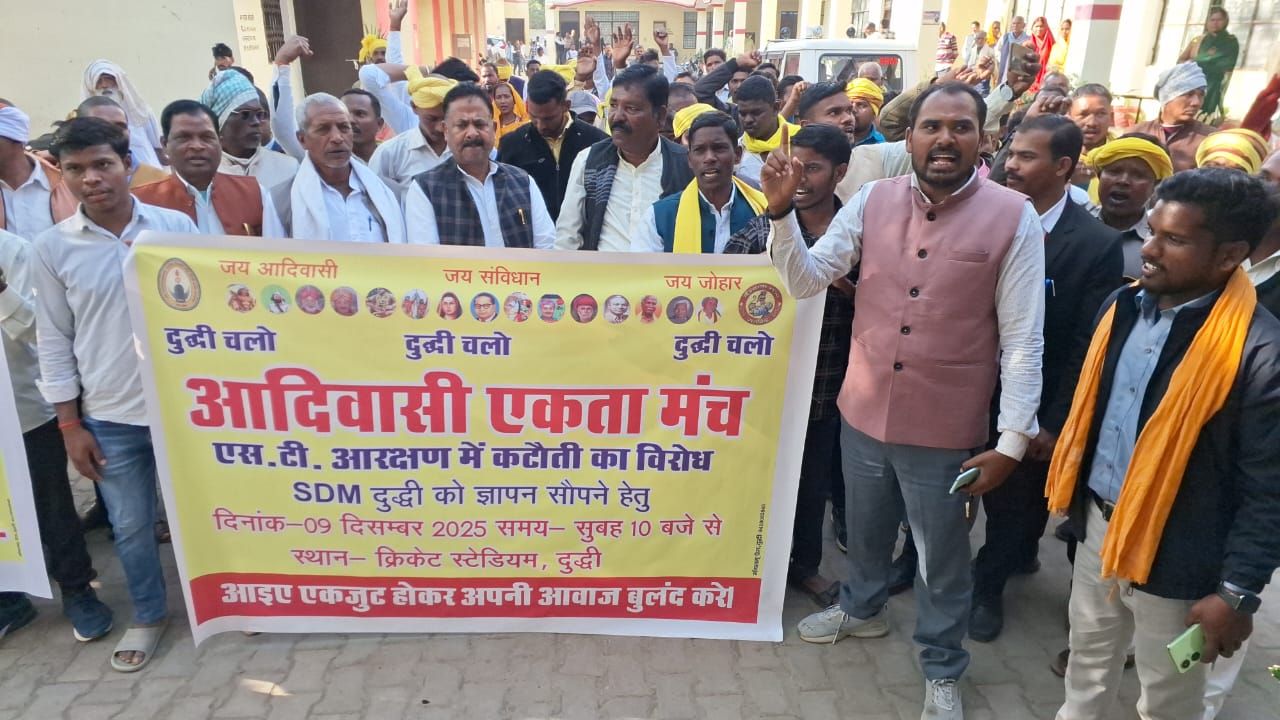 दुद्धी/सोनभद्र (मदन मोहन तिवारी) गोंडवाना स्टूडेंट्स यूनियन एवं आदिवासी एकता मंच के कार्यकर्ताओं ने आरक्षण को लेकर जीआईसी मैदान से जुलूस निकाल कर नारेबाजी करते हुए तहसील पहुँच कर ज्ञापन सौंपा। उपजिलाधिकारी नामित ज्ञापन न्यायिक एसडीएम अश्वनी सिंह को देते हुए सम्बोधित करते हुए जिला पंचायत सदस्य जुबेर आलम, बबई सिंह मरकाम सहित अन्य लोगों ने कहा कि प्रदेश में आजादी के बाद जनजातियों को दो प्रतिशत आरक्षण मिला। जिसमें की थारू, भिक्सा, भाटिया, सहरिया, बंजारा, नायक, ओझा आदि कई जाति आते हैं। पूर्वांचल में कई जाति के जनजाति छूट गए। जैसे गोंड़, खरवार चेरो, बैगा, पनिका, अगरिया, भुइया, पठारी जातियों की 2003 में शामिल किया गया। रैपिड सर्वे कर 2014 से शासनादेश और 2015 में पंचायत चुनाव में सम्मिलित किया गया। लेकिन पूर्ण रूप से लागू नहीं किया गया। जबकि सरकार के शासनादेश के अकेले सोनभद्र जिला आबादी के आधार पर 20.67 प्रतिशत आदिवासी हैं। जिलावार आरक्षण सीट निर्धारित किया गया है। लेकिन ग्राम प्रधान पद हेतु औसत से कम सीट दिया गया। 2025 में रोजगार हेतु कई विभागों में भर्ती प्रक्रिया चल रहा है। सोनभद्र के आदिवासियों को हिस्सेदारी 20.67 फीसदी मिलनी चाहिए। नए शासनादेश में जनजातियों को आबादी के आधार पर आरक्षण मिला है। सरकार से हमारी मांग है कि सरकारी नौकरी में आरक्षण मिले सोनभद्र आदिवासी के साथ न्याय संगत हो। इस कार्यक्रम में उमाशंकर सिंह आदिवासी अधिकार मंच, रामनारायण, फौजदार सिंह परस्ते, बृजेश कुमार सिंह, राज नारायण गोंड, देव कुमार, जोखन सिंह, अशोक आदि मौजूद रहे।
