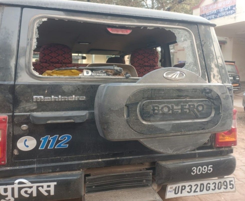 सोनभद्र मे पुलिस ग्रामीणों मे झड़प हेड कांस्टेबल गंभीर घायल, पुलिस वाहन के शीशे तोडे