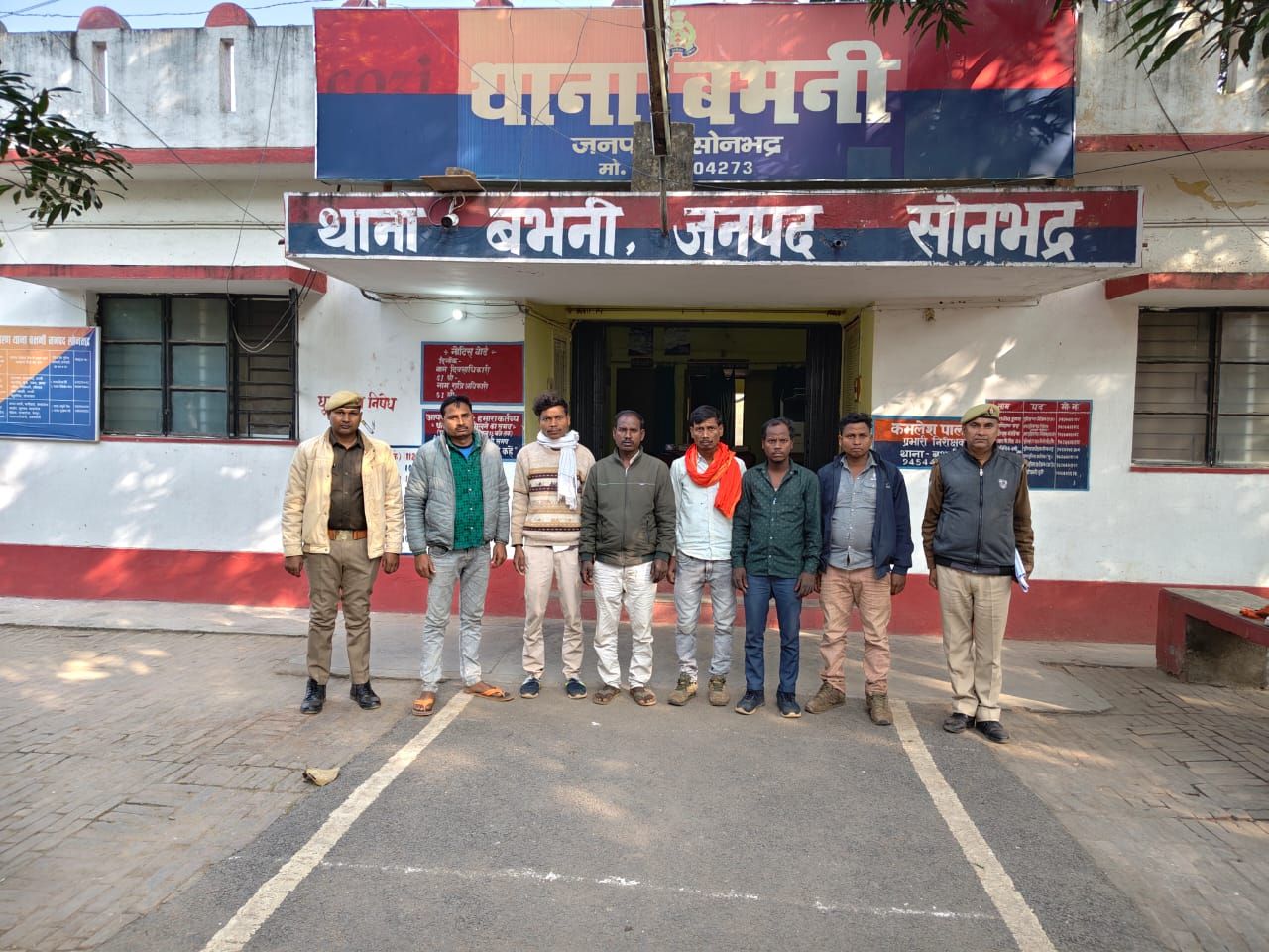 सोनभद्र पुलिस अधीक्षक अभिषेक वर्मा के निर्देशन मे और क्षेत्राधिकारी दुद्धि राजेश राय के देख रेख मे शांति व्यवस्था के दृष्टिगत बभनी पुलिस ने 06 लोगो पर कार्यवाही की है चौना गांव में शांति व्यवस्था भंग करने की कोशिश कर रहे छह व्यक्तियों को पुलिस ने गिरफ्तार किया है। इन सभी आरोपियों का शांति भंग की धाराओं में चालान कर न्यायालय भेज दिया गया। ये सभी लोग गांव का माहौल खराब करने का प्रयास कर रहे थे। बभनी पुलिस ने त्वरित कार्रवाई करते हुए इन्हें हिरासत में लिया।इन छह अभियुक्तों के खिलाफ भारतीय न्याय संहिता (B.N.N.S.) की धारा 170, 126 और 135 के तहत कार्रवाई की गई है। पुलिस का उद्देश्य क्षेत्र में शांति और व्यवस्था बनाए रखना है।गिरफ्तार किए गए अभियुक्तों में विवेक कुमार रौनियार (30 वर्ष), जगदीश बैगा (36 वर्ष), रमेश बैगा (33 वर्ष), देवी दयाल (23 वर्ष), सुनील गौड़ (30 वर्ष) और छोटेलाल (25 वर्ष) शामिल हैं।