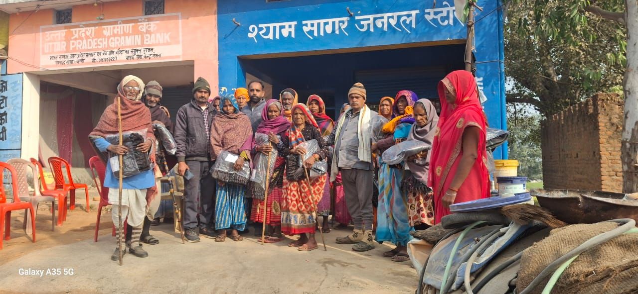 जिसको क्षेत्रीय लेखपाल सन्तोष कुमार यादव ने गाँव के ग्राम प्रधान प्रतिनिधि राधेश्याम गुर्जर जिला पंचायत सदस्य प्रत्याशी पूजा की मौजूदगी में पहले गाँव मे कैम्प लगा कर फिर जो जरूरतमंद लाभार्थी घर से आने में असमर्थ थे उनके घर घर जा कर कंबल का कंबल बितरण किया गया।ठंड के मौषम में लेखपाल और जनप्रतिनिधियों के हाथों कम्बल पा कर गरीबों के चेहरे पर मुश्कान दिखाई दी।इस पुनीत अवसर पर ईश्वरी प्रसाद,ताराचंद गुर्जर,गनपत गुर्जर सहित अन्य तमाम गणमान्य लोग मौजूद थे।