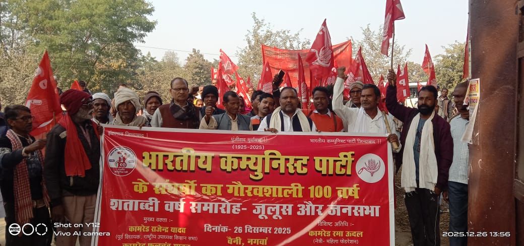 भाकपा की शताब्दी वर्ष समारोह पर कार्यकर्ताओं तीन किलोमीटर की दूरी तक निकाला जूलूस और किया जनसभा