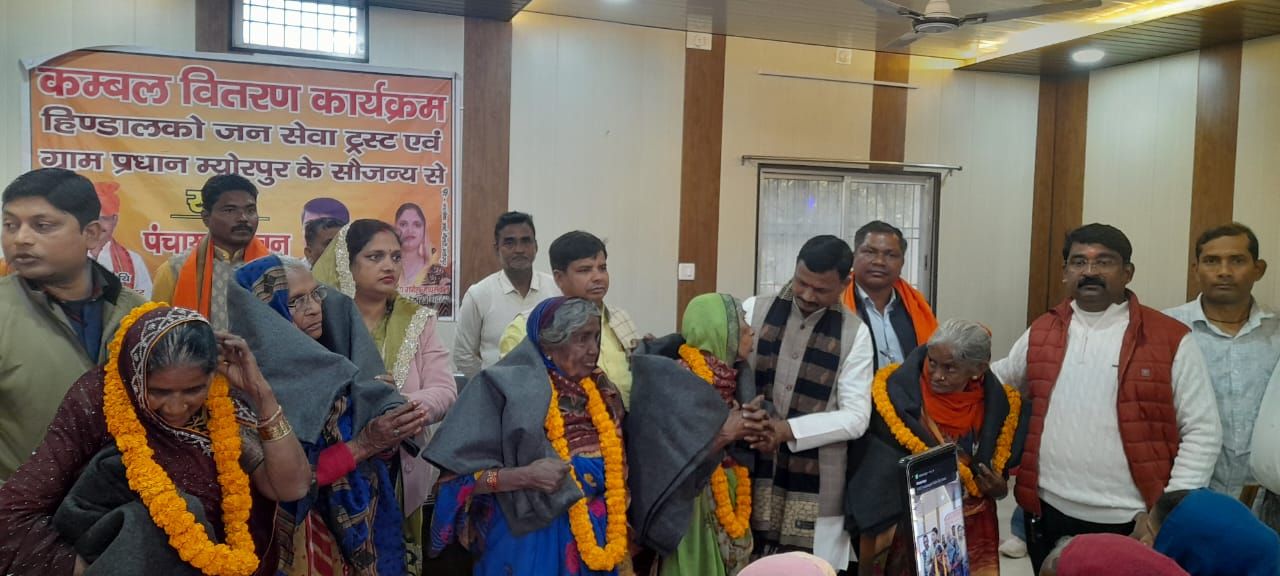 म्योरपुर पंचायत भवन में शनिवार को हिंडालको जन सेवा ट्रस्ट एवं ग्राम प्रधान म्योरपुर के सौजन्य से कंबल वितरण कार्यक्रम का आयोजन किया गया। कार्यक्रम का उद्देश्य भीषण ठंड के मौसम में गरीब, निर्धन, असहाय एवं विधवा वर्ग के लोगों को राहत पहुंचाना रहा।