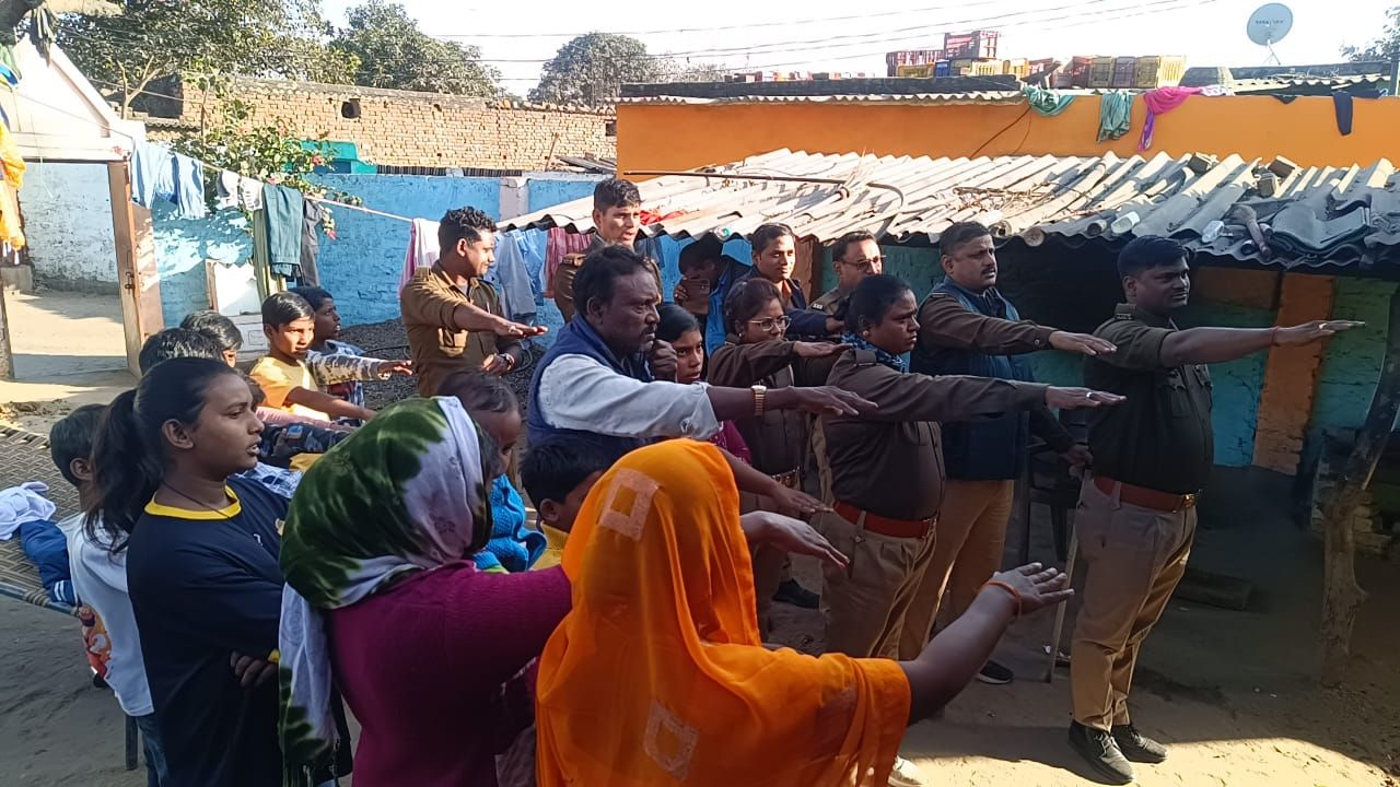 उसके बाद पुलिस व आबकारी टीम द्वारा स्थानीय बस्ती में निवास कर रहे छोटे छोटे बच्चों, बच्चियों, महिलाओं एवं पुरुषों को नशे के दुष्परिणामों से अवगत कराते हुए नशा से दूर रहने की शपथ दिलाकर जनमानस को नशा मुक्त समाज के निर्माण हेतु प्रेरित किया गया।