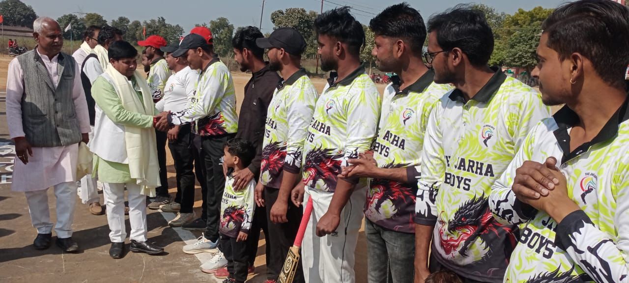 बीजपुर(रामजियावन गुप्ता) स्थानीय अजीरेश्वर धाम जरहा के प्रांगण में ग्रामीण क्रिकेट सीजन-6 प्रतियोगिता का शुभारंभ रविवार को भव्य रूप से हुआ । प्रतियोगिता के मुख्य अतिथि मानसिंह गोड़ ब्लाक प्रमुख म्योरपुर,विशिष्ट अतिथि सुशीला देवी ग्राम प्रधान जरहा अपने सह अतिथियों के साथ ग्राउंड में जाकर पूजा पाठ करके व खिलाड़ियों से परिचय प्राप्त कर खेल को शुरू कराया। उदघाटन मैच जरहा