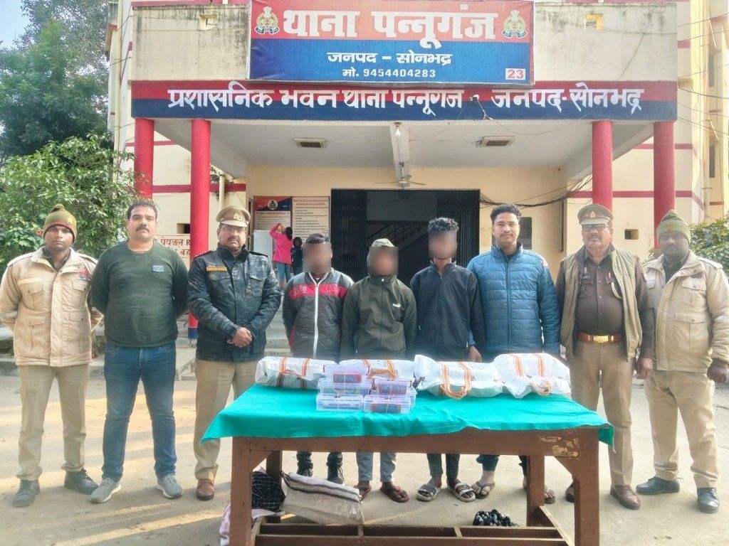 पुलिस अधीक्षक अभिषेक वर्मा द्वारा जनपद में अपराध एवं अपराधियों के विरुद्ध चलाए जा रहे अभियान के क्रम में अपर पुलिस अधीक्षक अनिल कुमार के पर्यवेक्षण मे क्षेत्राधिकारी सदर राज सोनकर के मार्गदर्शन मे पन्नूगंज एसएचओ अखिलेश मिश्रा के निर्देशन में थाना पन्नूगंज पुलिस द्वारा वांछित अभियुक्तों की गिरफ्तारी हेतु सघन अभियान चलाया जा रहा था। पन्नूगंज पुलिस को मुखबिर से सूचना प्राप्त हुई कि ग्राम पकरहट में तीन संदिग्ध व्यक्ति नहर के रास्ते इधर उधर घूमते हुए ग्राम सिकरिया की ओर जा रहे हैं, जो पकरहट स्थित देशी शराब व बीयर की दुकान से हुई चोरी की घटना में संलिप्त प्रतीत हो रहे है। सूचना पर तत्काल पुलिस टीम द्वारा घेराबंदी की गई। पुलिस बल को देखकर तीनों संदिग्ध व्यक्ति भागने का प्रयास करने लगे, जिन्हें घेरकर पकड़ लिया गया। पूछताछ के दौरान अभियुक्तों द्वारा स्वीकार किया गया कि पकरहट स्थित देशी शराब व बीयर की दुकान में चोरी की थी तथा आज पुनः चोरी की नीयत से रेकी कर रहे थे। आरोपी का चालान कर दिया गया है।