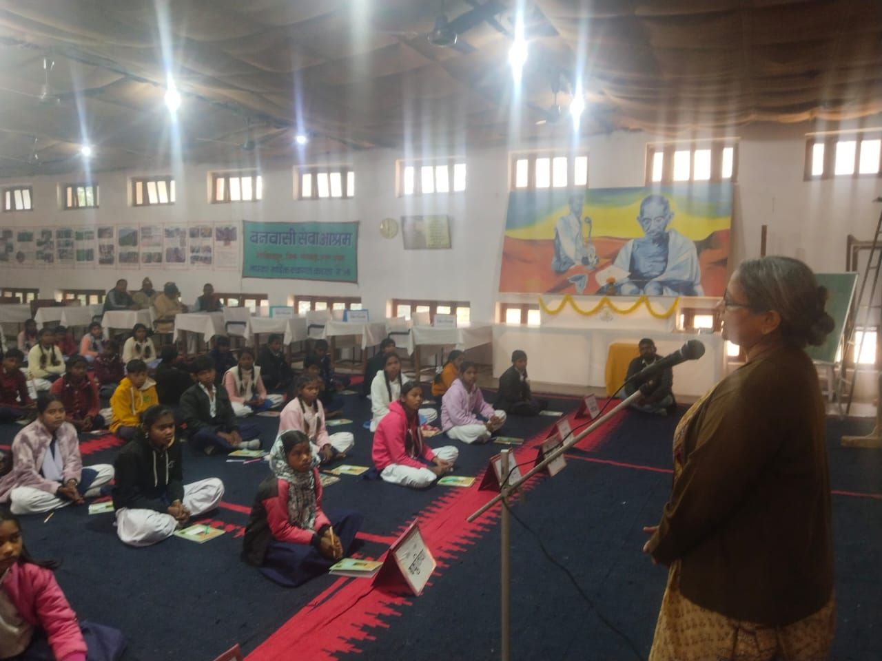 कार्यक्रम में आश्रम द्वारा संचालित शिक्षा निकेतन गोविंदपुर, जीवनशाला मनबसा, फरीपान एवं बकुलिया विद्यालयों के कुल 58 विद्यार्थी भाग ले रहे हैं। दो दिनों तक चलने वाले इस आयोजन में बच्चों की बौद्धिक, रचनात्मक और सामूहिक क्षमताओं को मंच प्रदान किया जा रहा है।