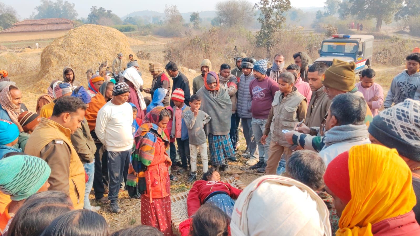 थाने में दिए प्रार्थना पत्र में मृतिका के पति अमरेश पनिका ने कहा कि मैं अपने परिवार के भरण पोषण हेतु घर के बाहर जाकर काम करता हूं अपनी पत्नी की मौत की खबर सुनकर जब मैं घर आया तथा पत्नी का दाह संस्कार करने के बाद बीते शुक्रवार की रात्रि को जब मौत के कारण को परिवार के बीच जानना चाहा तो बड़ा पुत्र अमित उम्र 8 वर्ष ने बताया कि घर में पड़ोस का ही रहने वाला खरभूलन शर्मा उर्फ बबल शर्मा ने आकर खाना भी खाया व हमारी पत्नी के साथ भद्दी भद्दी गाली के साथ-साथ मारपीट किया तथा रात्रि को ही मेरी पत्नी को घर से बाहर ले जाकर आम के पेड़ में फांसी के फंदे पर झूला कर मौत के घाट उतार दिया।