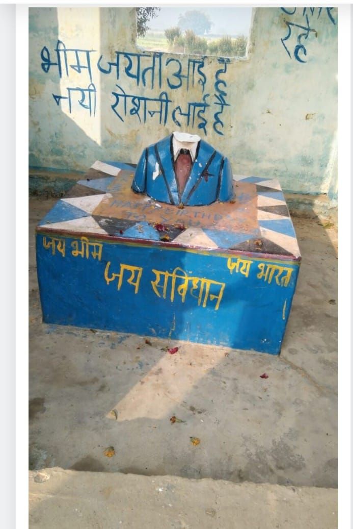 असामाजिक तत्वों द्वारा तोड़ी गई अंबेडकर की मूर्ति,गांव में तनाव,मौके पर पुलिस फोर्स तैनात