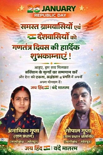की ओर से समस्त ग्रामवासियों एवं देशवासियों को गणतंत्र दिवस की हार्दिक शुभकामनाएं।