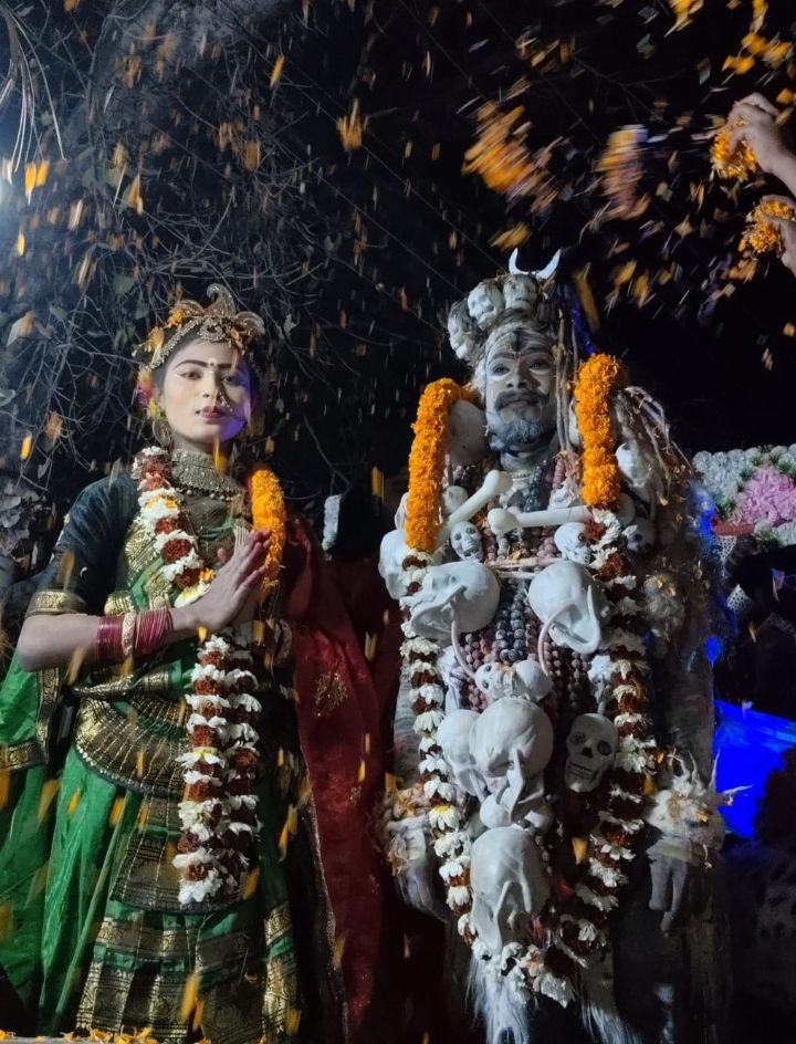 रहीं, जो श्रद्धालुओं के आकर्षण का केंद्र बनीं। डमरू, नगाड़ा और बैंड-बाजों की मधुर धुनों पर वातावरण पूरी तरह शिवमय हो गया। बारात के साथ चल रहे श्रद्धालु शिवगणों का रूप धारण कर नृत्य करते नजर आए। कलाकारों ने शरीर पर भस्म रमाकर, जटाजूट धारण कर तथा हाथों में त्रिशूल लेकर भोलेनाथ के गणों की जीवंत और मनोहारी प्रस्तुति दी, जिसे देखने के लिए रास्ते भर लोगों की भारी भीड़ उमड़ पड़ी।