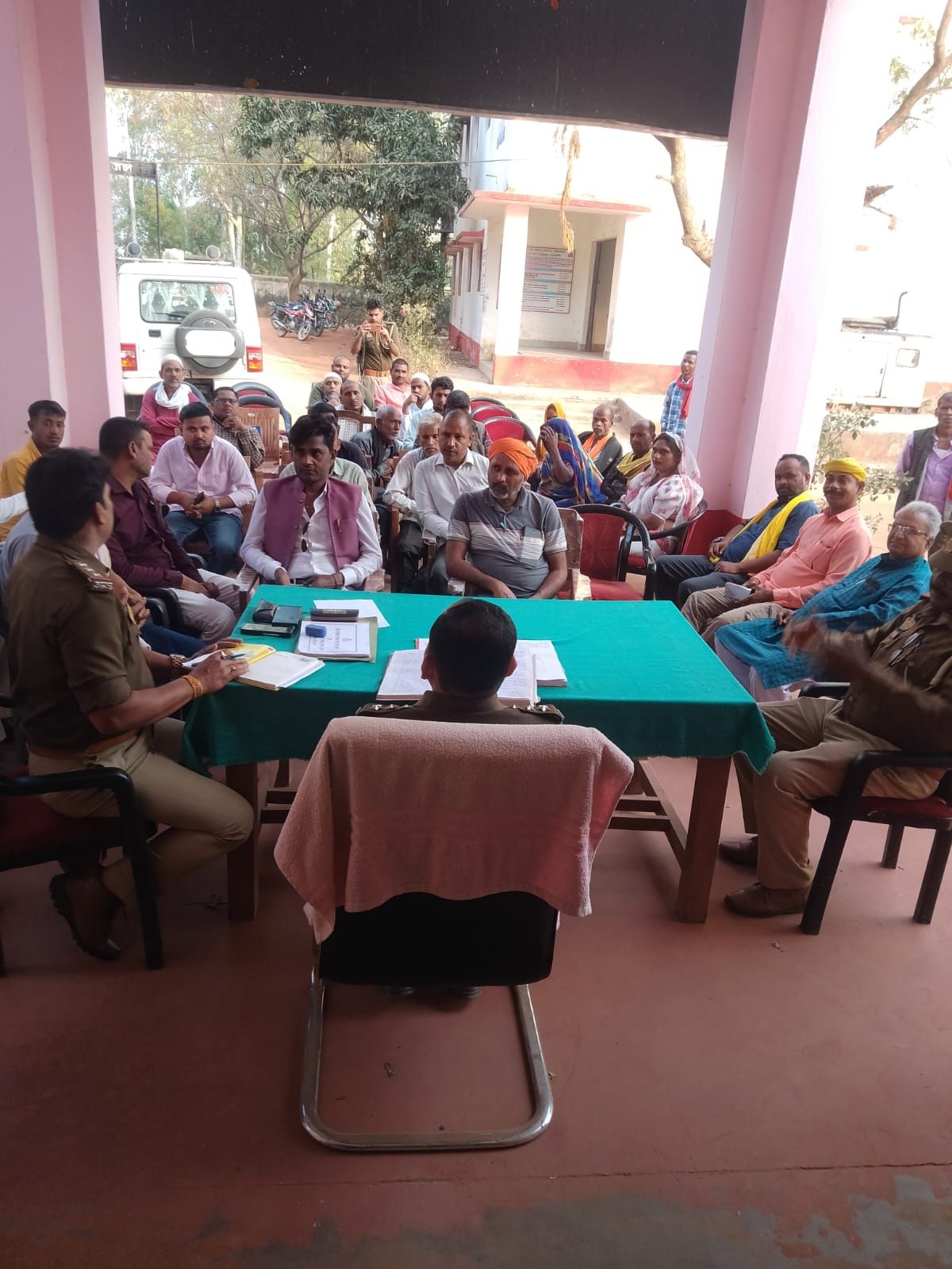 वैनी/सोनभद्र (राजन गुप्ता) होली एवं रमजान के मद्देनजर रायपुर थाना परिसर में पीस कमेटी का मीटिंग हुआ। बैठक की अध्यक्षता राज सोनकर और नायब तहसीलदार के द्वारा किया गया। बैठक के स्थानीय नागरिकों गणमान्य व्यक्तियों व्यापारी मंडल प्रतिनिधियों एवं ग्राम प्रधान धर्म गुरुओं मुस्लिम भाइयों का सभ्यता रही होली रमजान के दौरान आपसी सौहार्द भाईचारा एवं पारस्परिक सामान बनाए रखें तथा त्योहारों को परंपरागत शांतिपूर्ण ढंग से मनाया जाए।