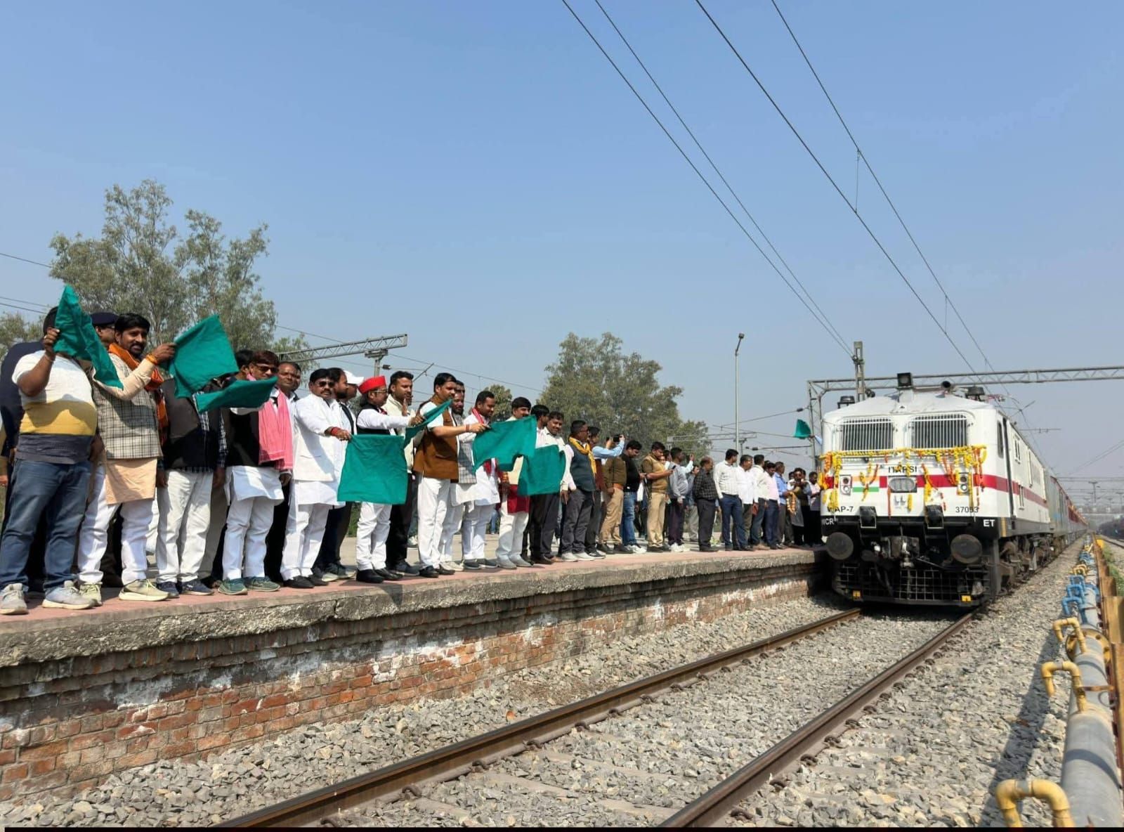चोपन से हरी झंडी के साथ रवाना हुई धनबाद भोपाल एक्सप्रेस