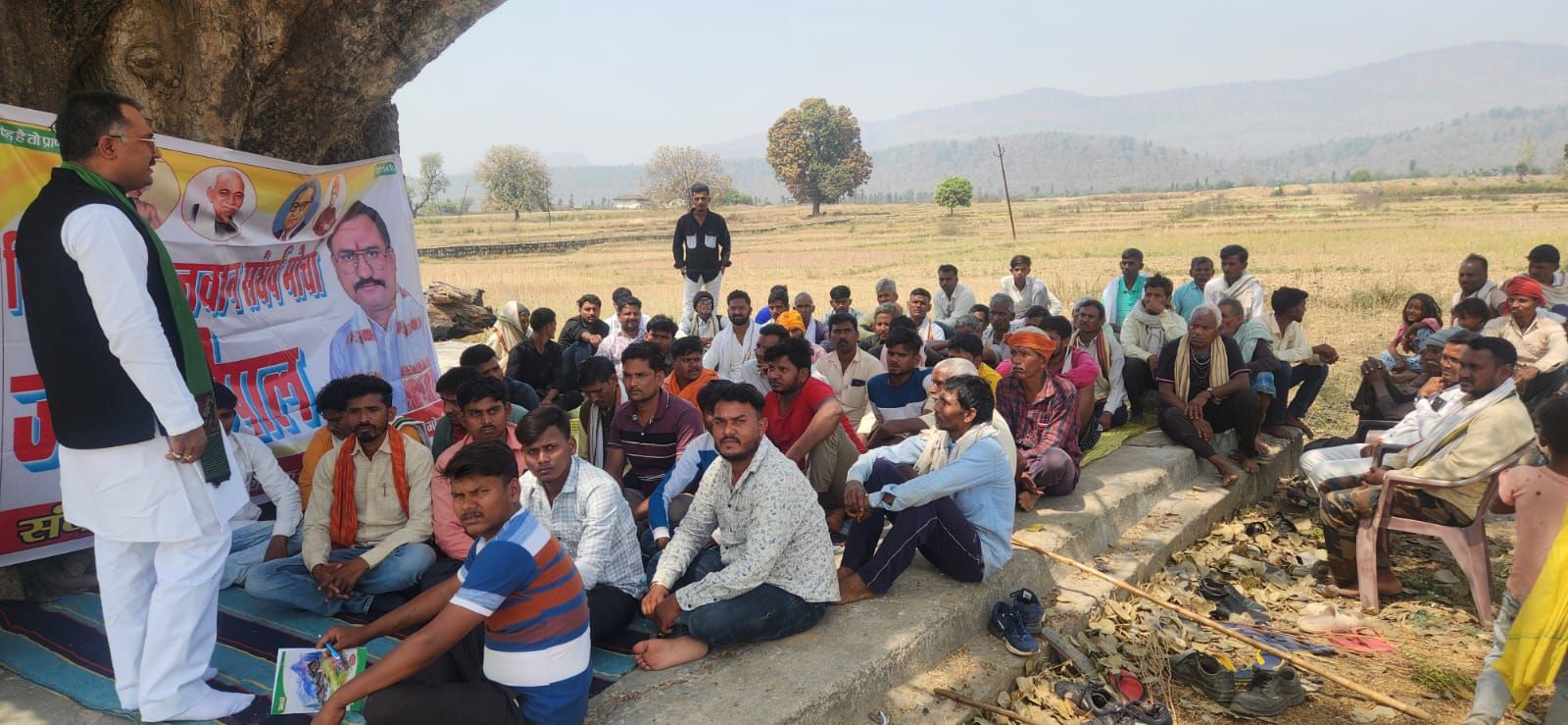 सोनभद्र आज किसान नौजवान संघर्ष मोर्चा की जन चौपाल विधानसभा 401 के तरिया क्षेत्र के ग्राम पंचायत चकरिया में आयोजित की गयी जिसमे मोर्चा संयोजक संदीप मिश्रा ने ग्रामीण परिवार जनो की समस्याओं को सुना तथा सबकी बात को सुनने के बाद मोर्चा संयोजक ने शासन सत्ता में बैठे लोगों की उदासीनता पर कडा प्हार करते हुए कहा कि जल्दी ही तरिया क्षेत्र की तीन प्रमुख मांग पटवध से पोखरिया बसुहारी मार्ग का हो जल्द निर्माण तथा बरहमोरी में पचास बेड का स्वास्थ्य केन्द्र जल्द बने व मोबाइल टावर पूरे क्षेत्र में लगया जाय साथ ही मोर्चा संयोजक ने कहा कि यदि ये तीनो प्रमुख माग जल्द पूर्ण न कि गयी तो मोर्चा बड़ा आन्दोलन करने को बाध्य होगा और जो लोग भी इस तरह की व्यवस्था का गुणगान करते है व कहते हैं कि स्वर्णिम काल चल रहा है उनके उपर कडा प्रहार करते हुए संदीप मिश्र ने कहा कि वे अपने घर परिवार की पढाई दवाई यहाँ दस दिन रहकर कराकर दिखाए ऐसे संवेदनहीन लोगों की वजह से आप हमारे तरिया के परिवारि जन संघर्ष कर रहे है