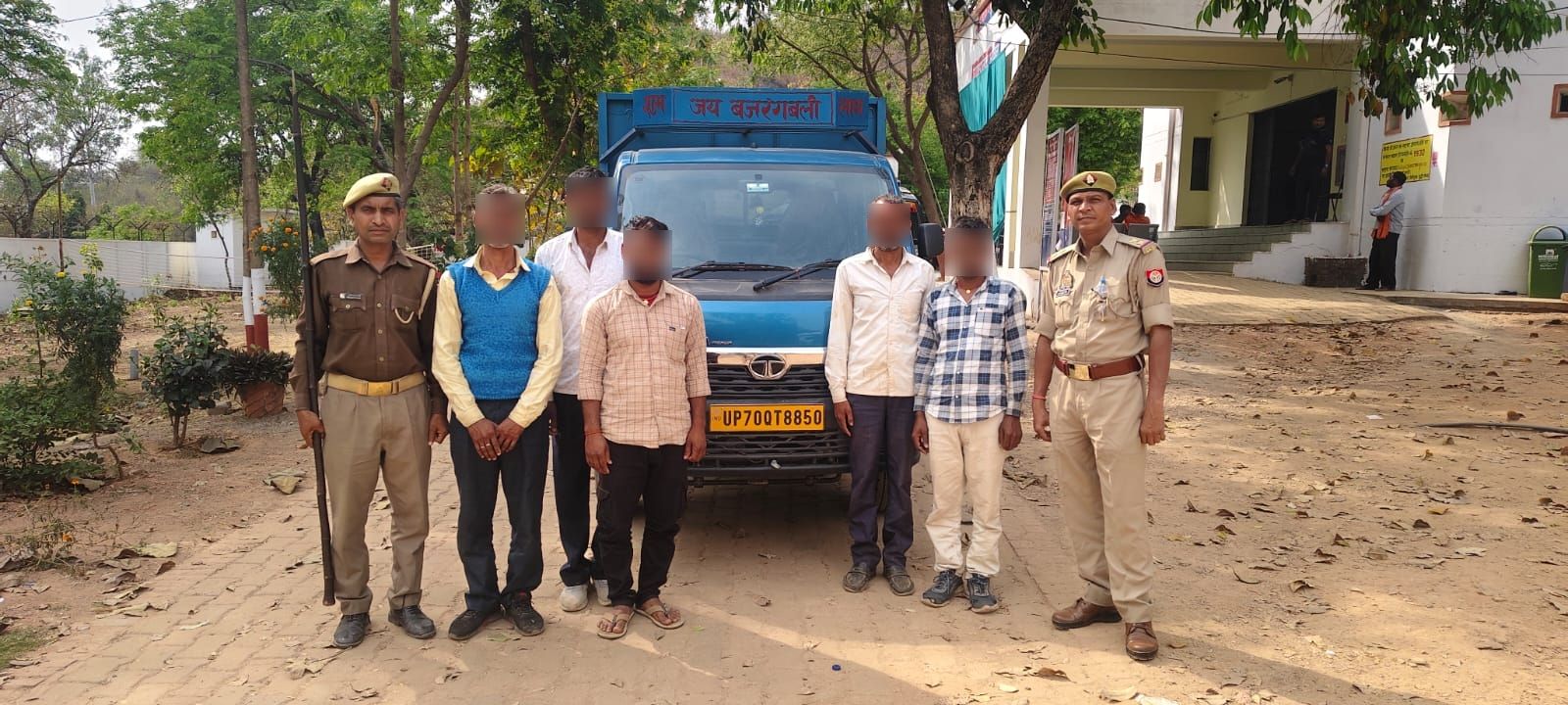 दुद्धी एसएचओ धर्मेंद्र सिंह और थाना दुद्धी मय पुलिस टीम द्वारा बजरिये मुखबिर की सूचना पर दुद्धी से लगभग 100 मीटर पूर्व एक मैजिक वाहन में 3 गोवंश को क्रूरता पूर्वक लादकर झारखंड ले जाते हुए 5 आरोपी को गिरफ्तार किया है ।इस संबंध में थाना दुद्धी पर मुकदमा अपराध संख्या 70/2026 धारा 11 पशु क्रूरता अधिनियम के अंतर्गत अभियोग पंजीकृत कर आरोपी का चालान कर दिया गया है।