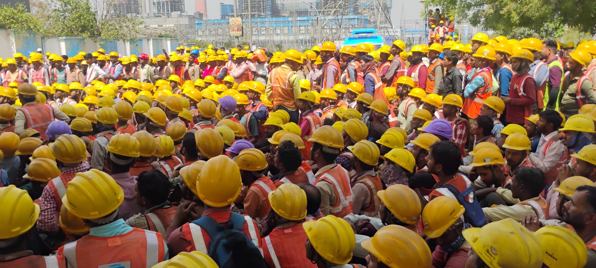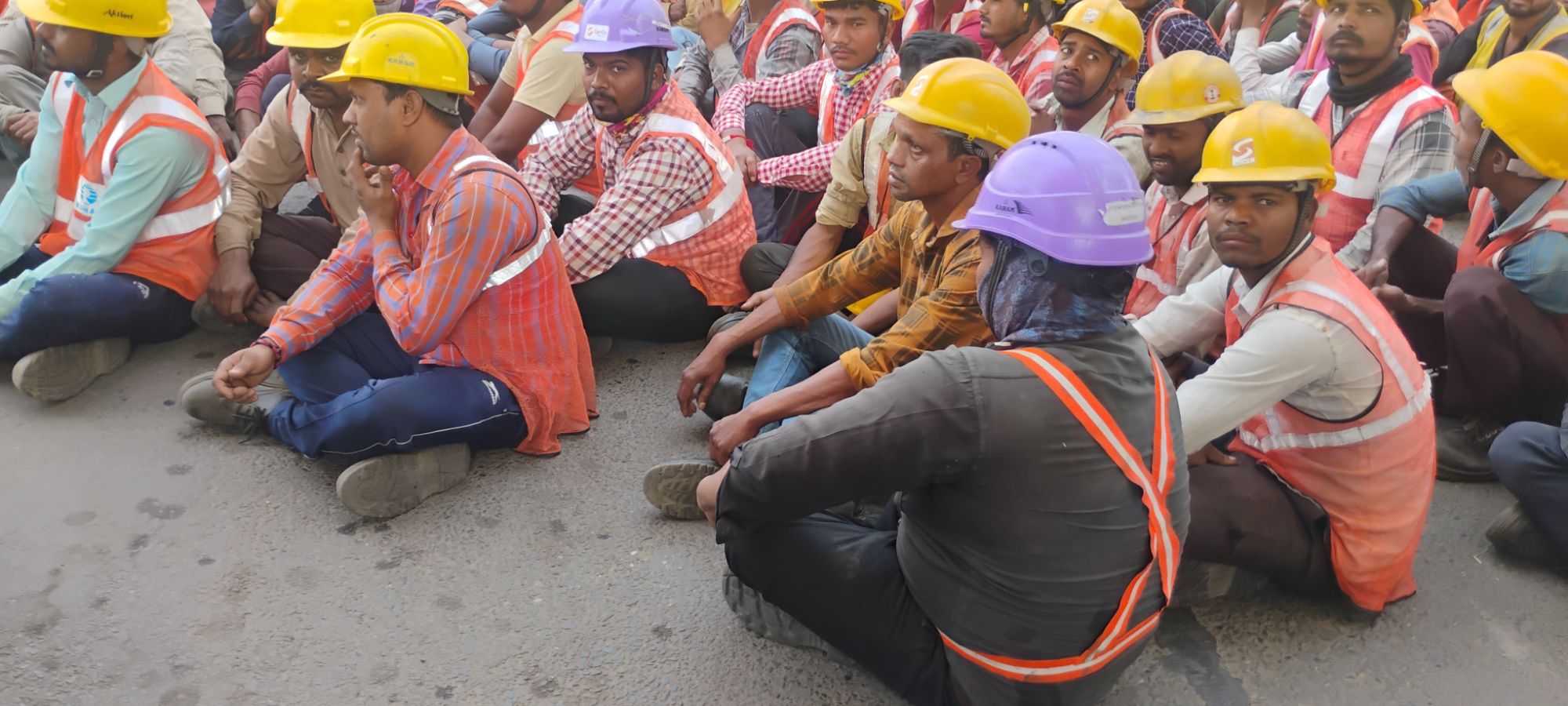 रिहंद परियोजना में कार्यरत विभिन्न कंपनियों के श्रमिको ने किया आंदोलन