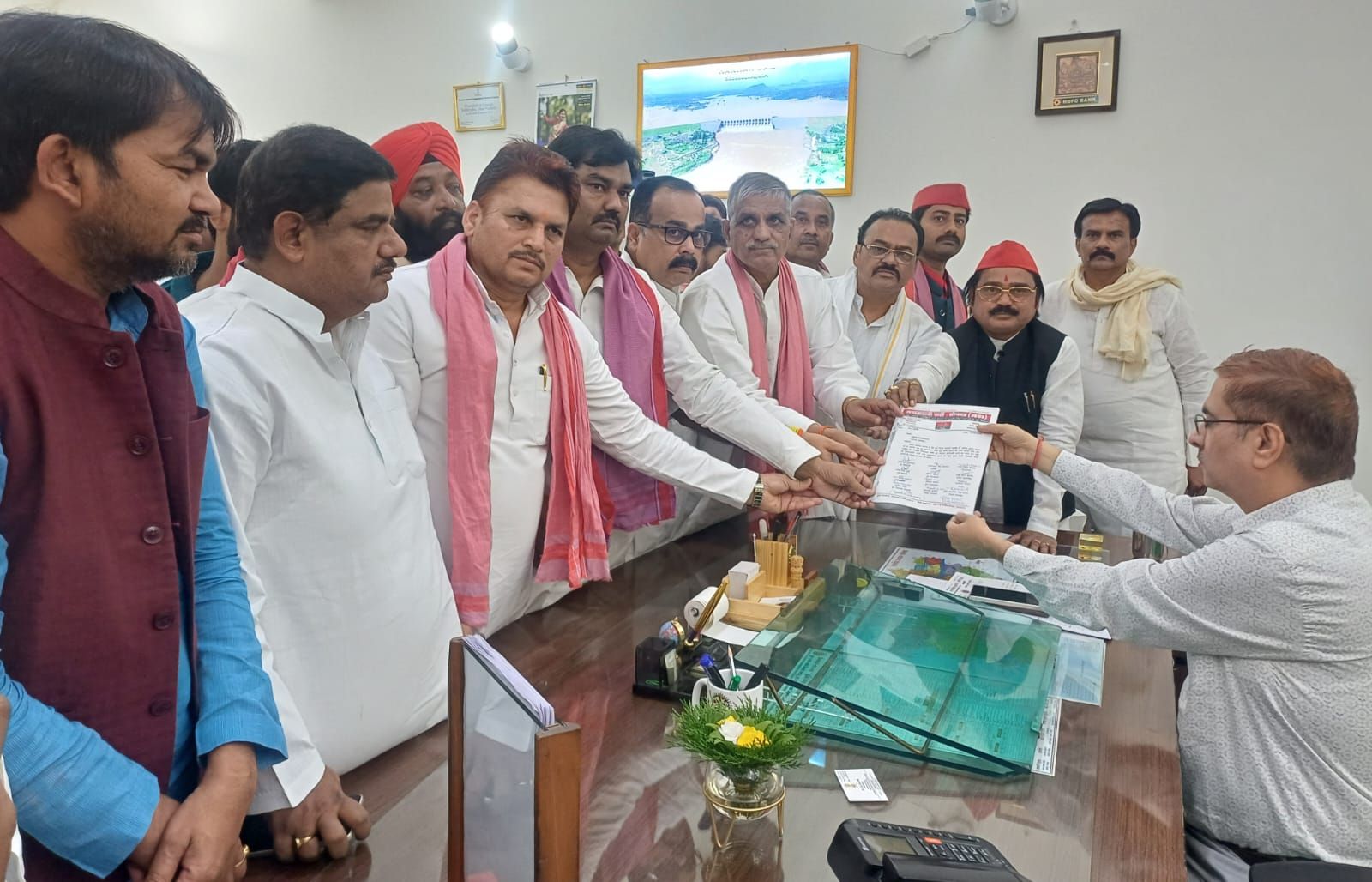 अनिल यादव पर दर्ज मुकदमे के विरोध में सपा का प्रदर्शन, डीएम को सौंपा ज्ञापन