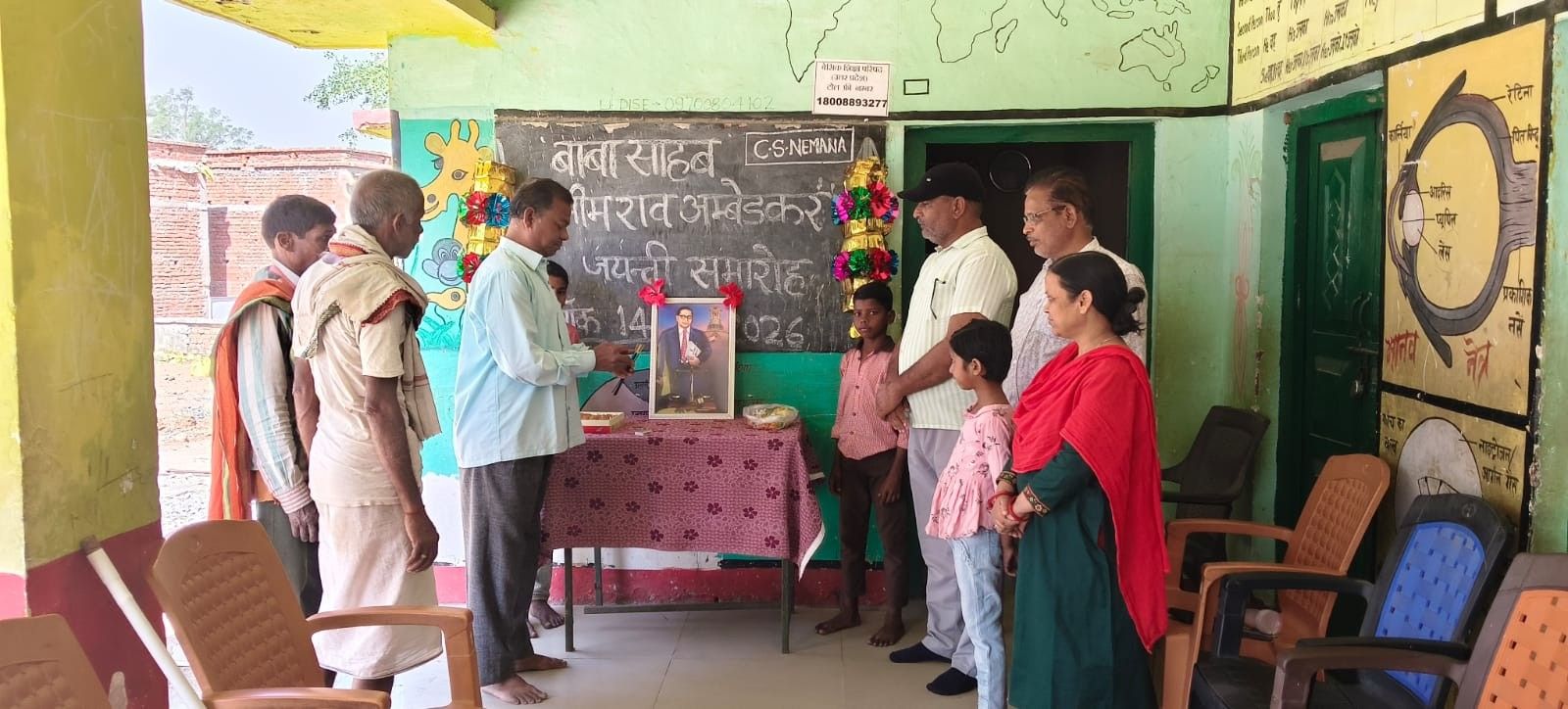 बीजपुर(रामजियावन गुप्ता) संविधान शिल्पी बाबासाहब डॉ भीम राव अम्बेडकर और महान गणितज्ञ आर्यभट्ट की जयंती मंगलवार को कंपोजिट विद्यालय नेमना में विविध कार्यक्रमों के साथ मनाया गया। कार्यक्रम का शुभारम्भ विद्यालय प्रबंध समिति अध्यक्ष लालेराम, सुशील कुमार गुप्ता,पूर्व अध्यक्ष राम नरेश, शिक्षकों और उपस्थित ग्रामीणों व बच्चों द्वारा डॉ भीम राव अम्बेडकर के चित्र पर पुष्पांजलि अर्पित कर किया गया।