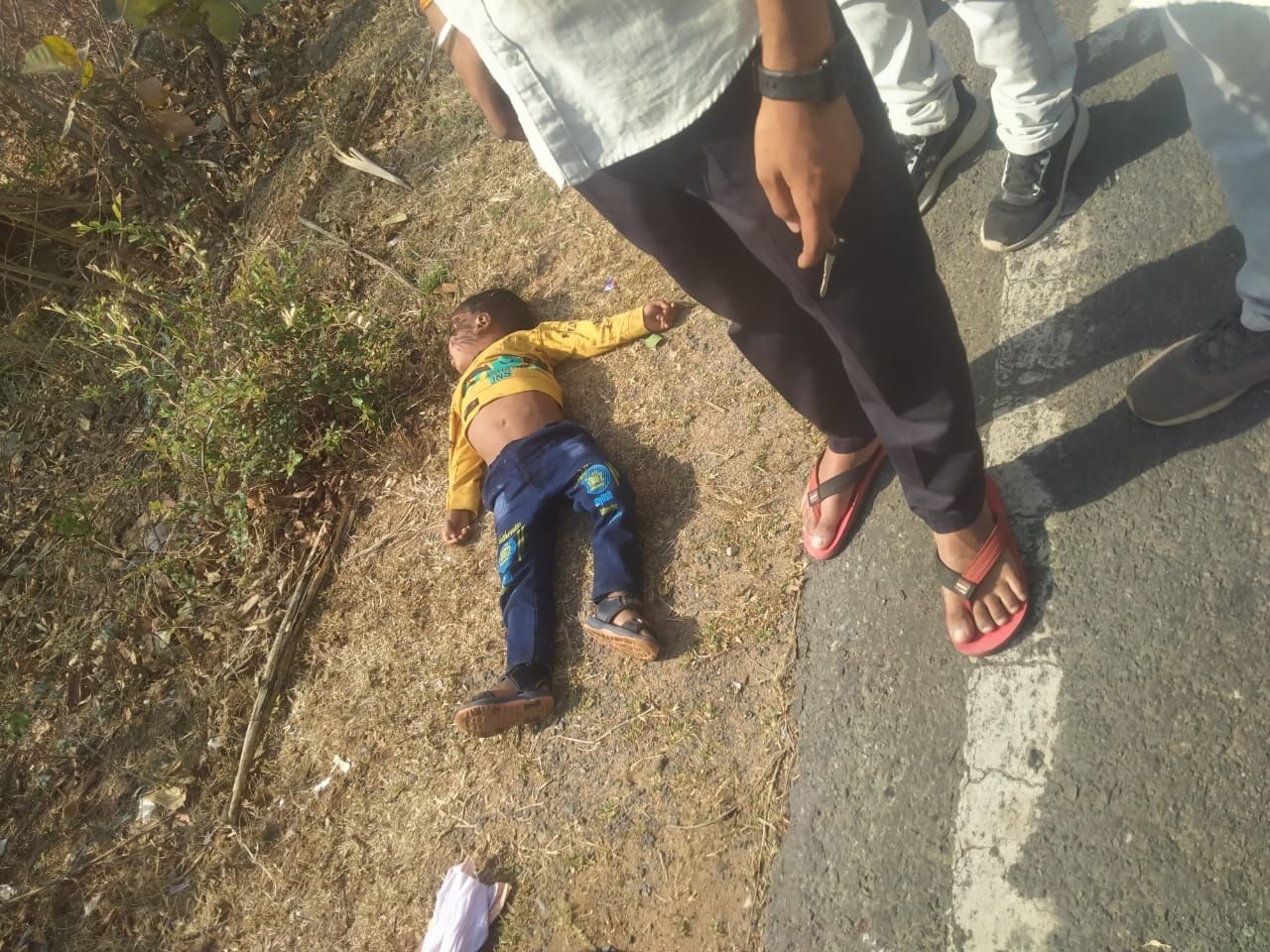मुख्य -मार्ग पर सड़क हादसा: बिजली के पोल से टकराई बाइक, युवक व बच्चा घायल