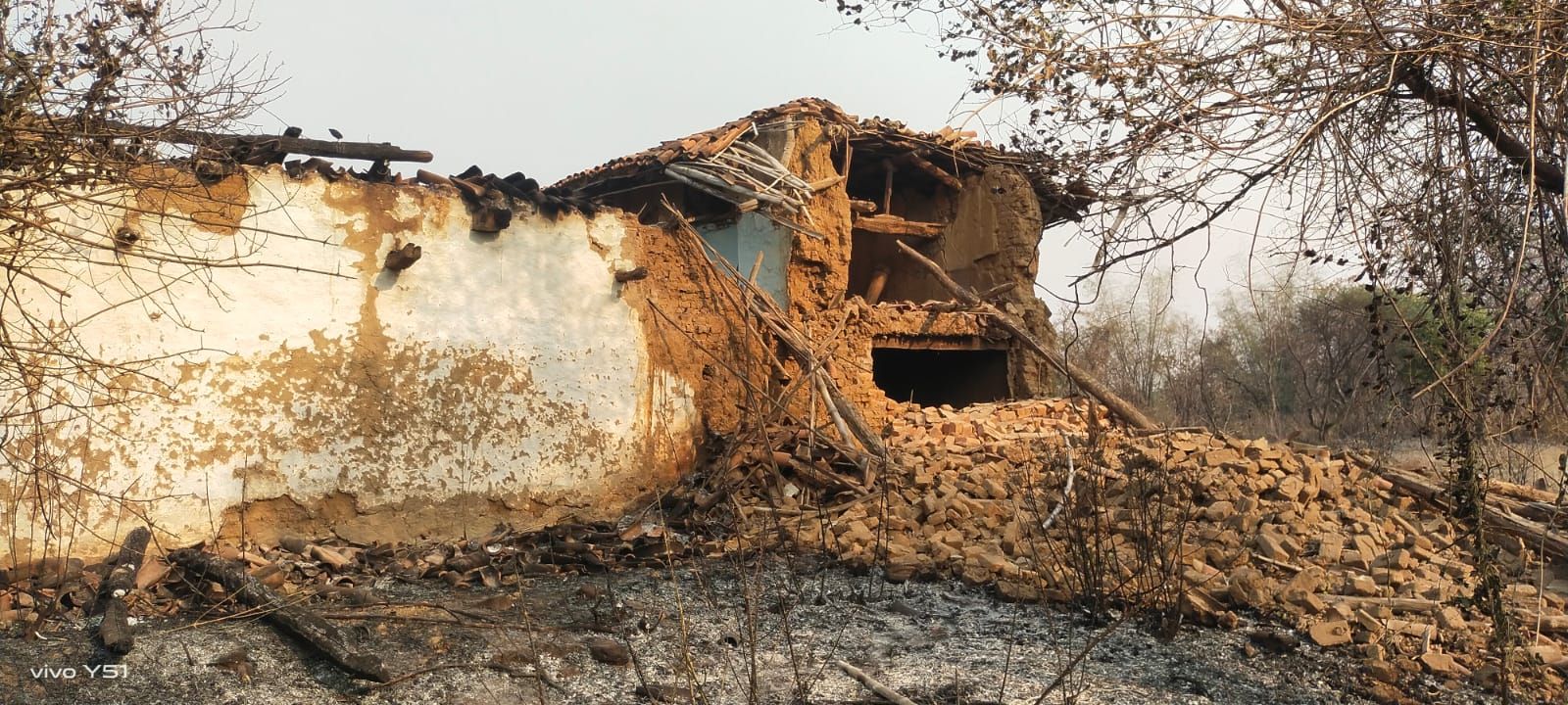 संदिग्ध परिस्थितियों में कच्ची मकान में लगी आग सामान जलकर हुई राख