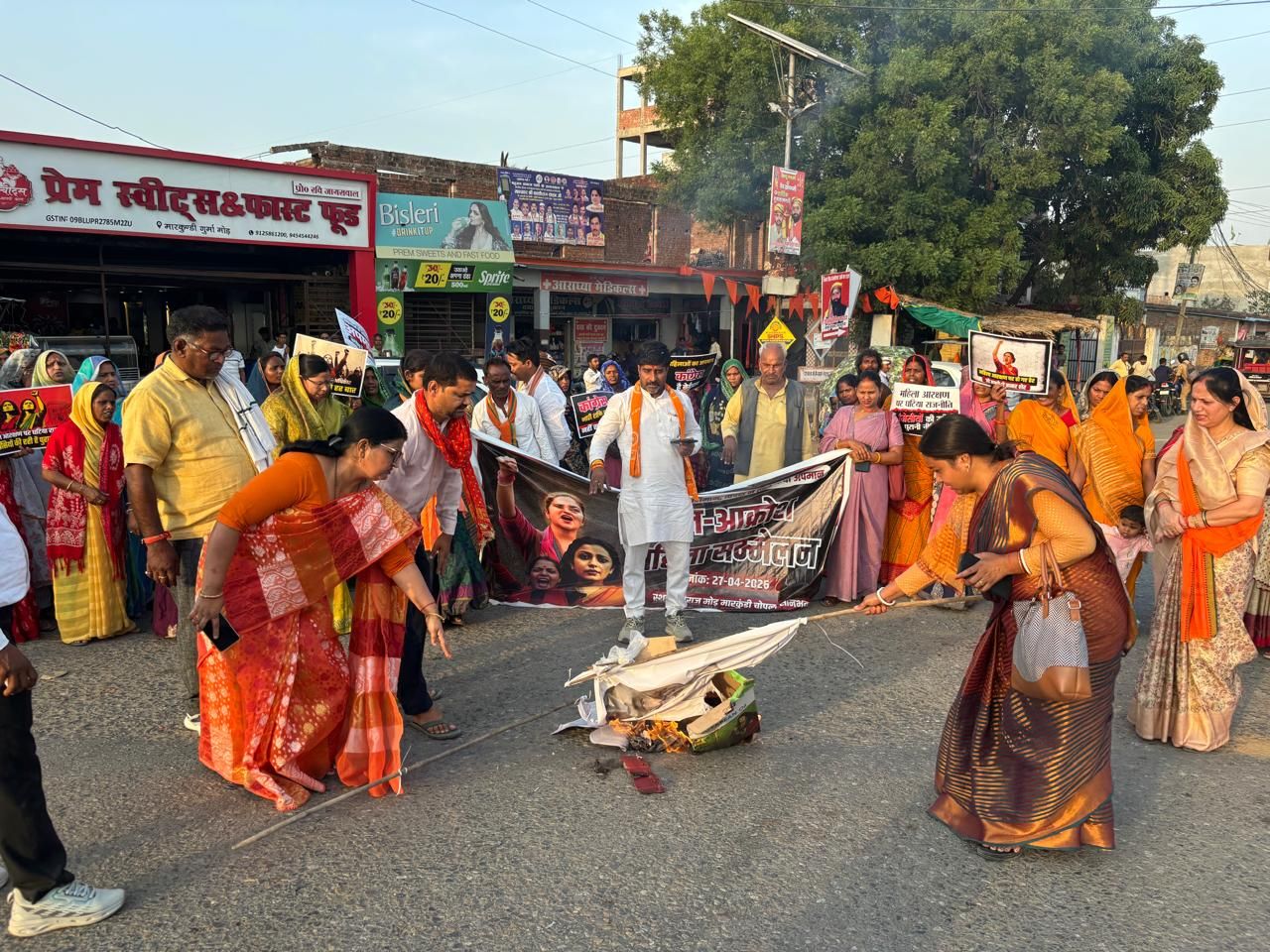 गुरमा/सोनभद्र (ओम प्रकाश गुप्ता) राबर्ट्सगंज विकास खण्ड के मारकुंडी मे आरती चौबे के नेतृत्व में महिलाओं ने जन आक्रोश महिला पदयात्रा निकाली। इस रैली में महिलाओं ने कांग्रेस और सपा के खिलाफ नारेबाजी की। महिला मोर्चा की शबनम मिश्रा ने महिला आरक्षण पर जोर दिया और कहा कि कांग्रेस ने हमेशा महिलाओं के अधिकारों का विरोध किया है।